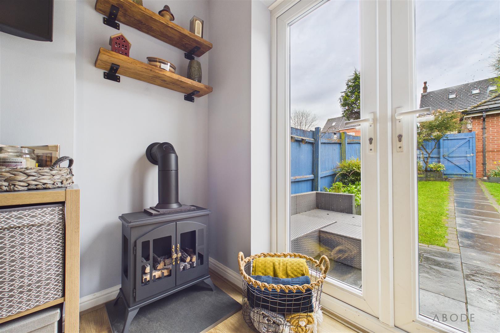 UPVC double glazed window to the rear elevation, patio doors leading out into the garden, central heating radiator and electric feature fireplace.