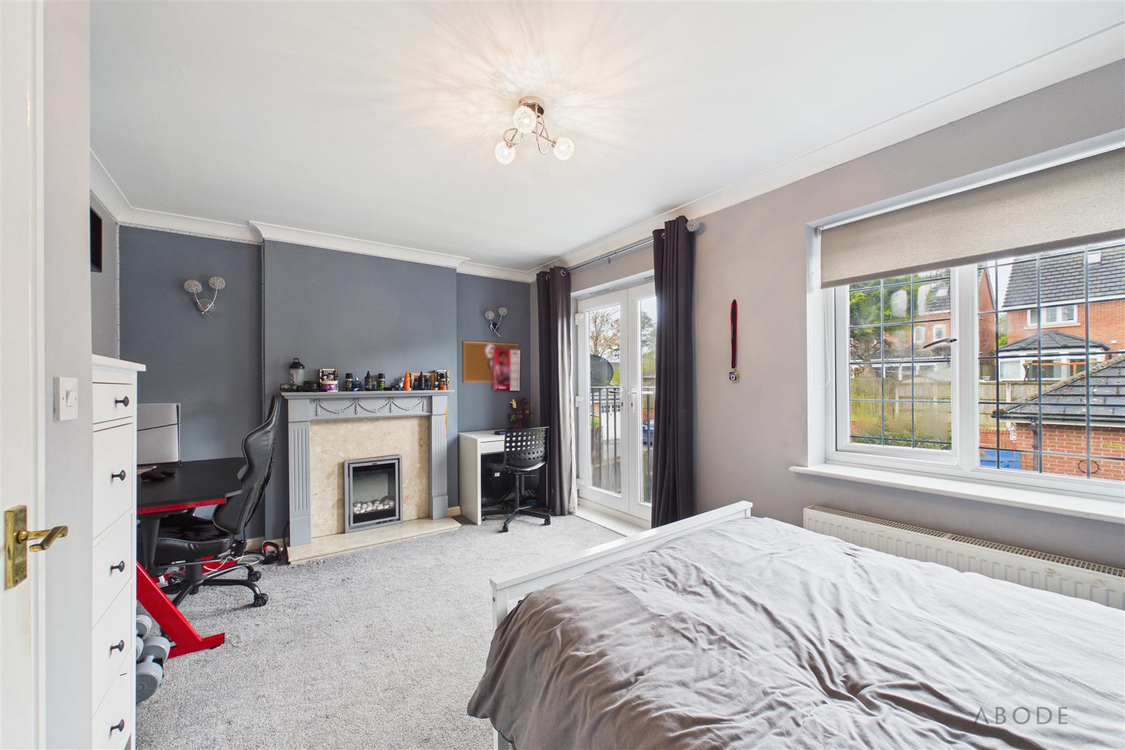 UPVC double glazed window to the rear elevation, Juliet balcony with patio doors, central heating radiator and electric feature fireplace.