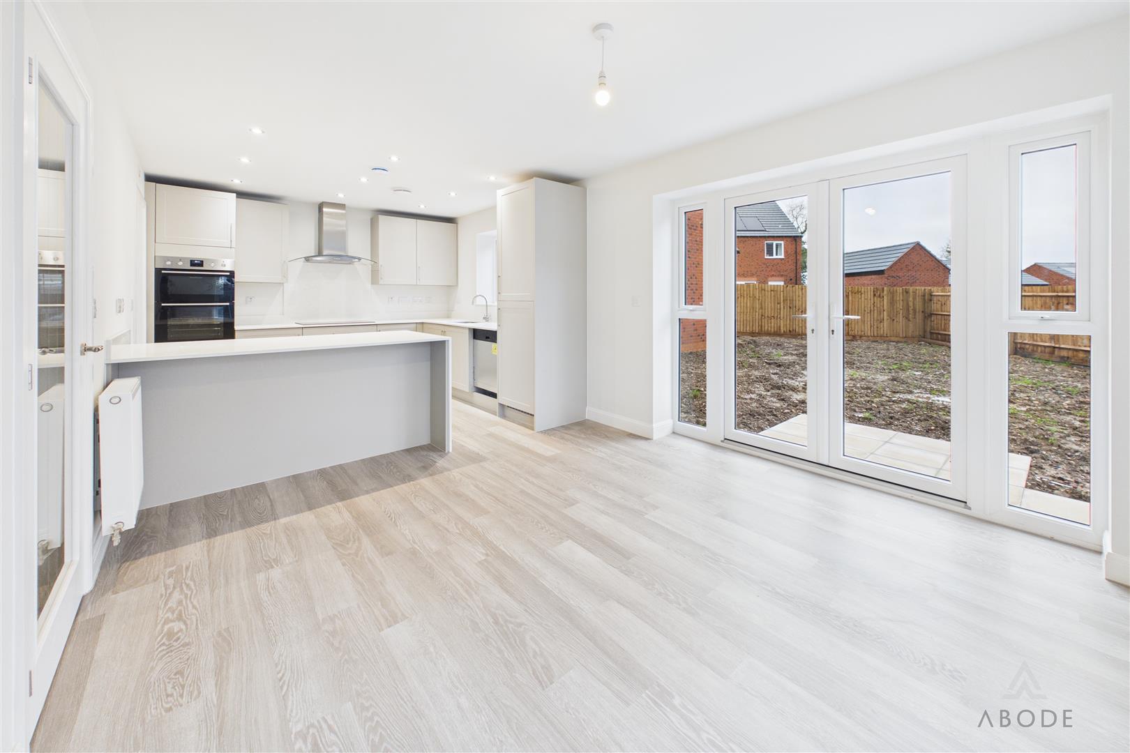 High specification kitchen with units, work surfaces and breakfast bar, sink and drainer unit. Fitted electric double oven and hob with extractor, integrated fridge freezer and dishwasher. Upvc double glazed window and double doors onto the garden and a radiator.