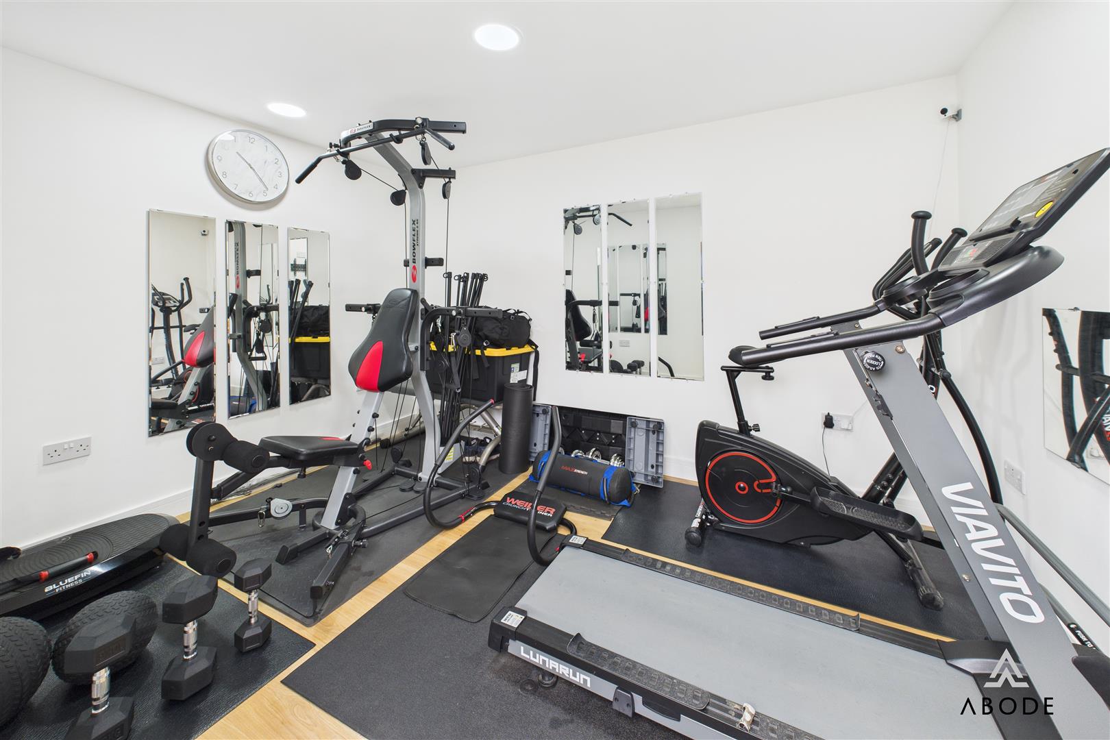A long side driveway, gated access to the enclosed rear garden offering paved seating areas, lawns and stone borders. Personal door into the rear of the garage which has been converted into a home gym with underfloor heating. The front of the garage with up and over door provides useful storage.
