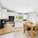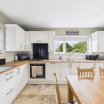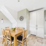 Modern base and eye level units with complimentary worktops, one and a half bowl stainless steel sink with draining board, integrated cooker and gas hob with extractor hood above. Built in fridge freezer, washing machine and dishwasher, ample space for a dining table and chairs. Central heating radiator, UPVC double glazed windows to the side and rear elevations and door leading out into the garden, tiled flooring, partially tiled walls, under stairs storage cupboard and spot lighting.