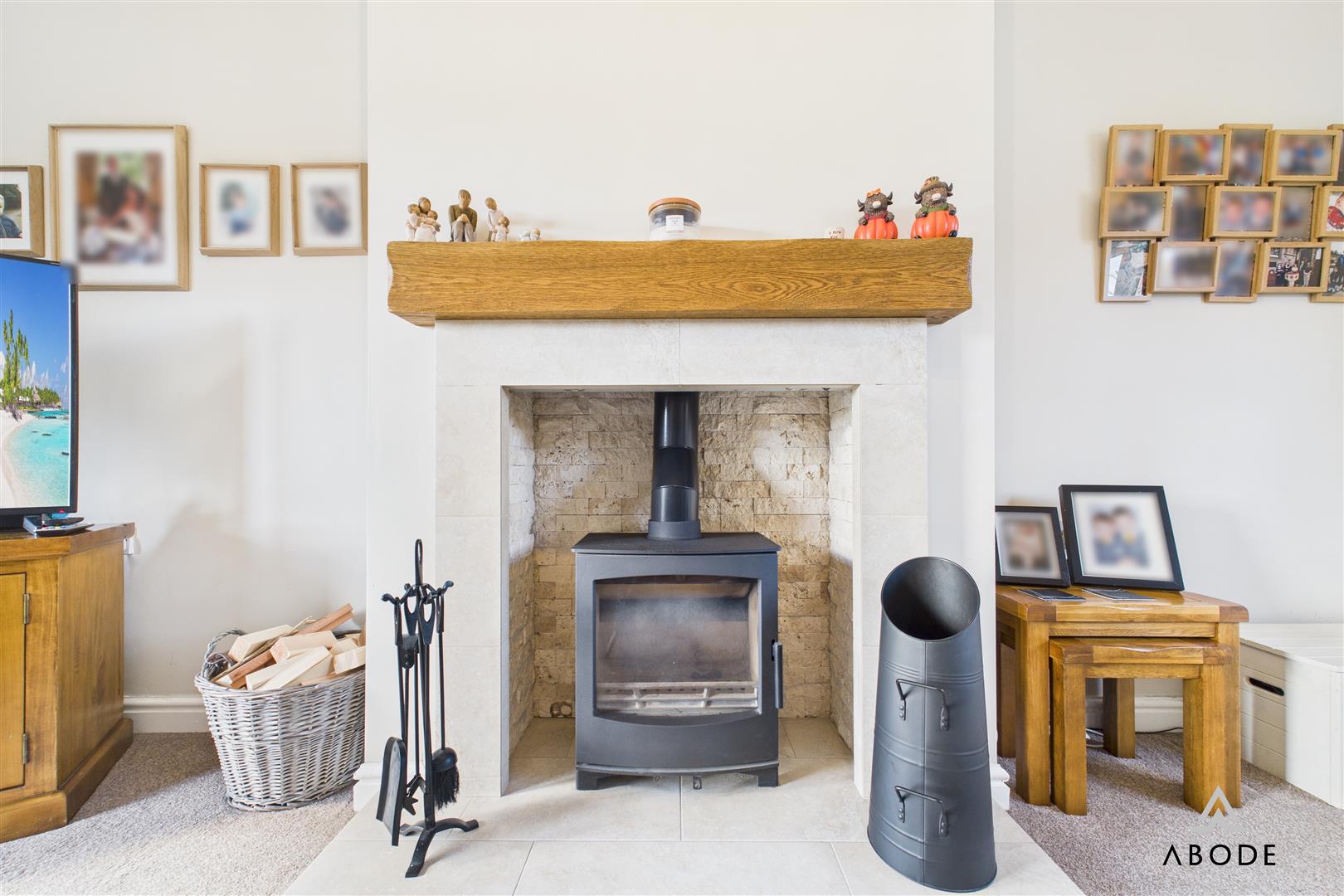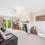 UPVC double glazed windows to the front elevation and patio doors leading out into the garden, central heating radiator, feature log burner with mantle and tiled hearth.