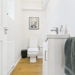 WC, UPVC double glazed window to the rear elevation, partially tiled walls.