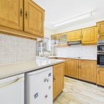 Base and eye level units with complimentary worktops, stainless steel sink with draining board, integrated cooker and grill plus hob with extractor hood over. Glass display units, space and plumbing for a fridge and freezer, UPVC double glazed window to the side elevation, central heating radiator, tiled flooring and partially tiled walls.