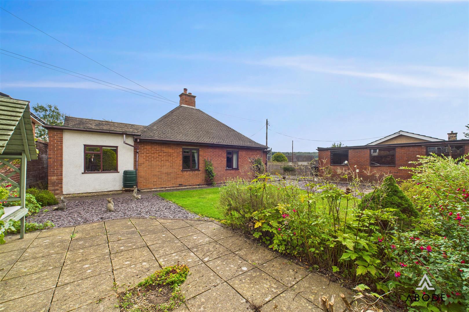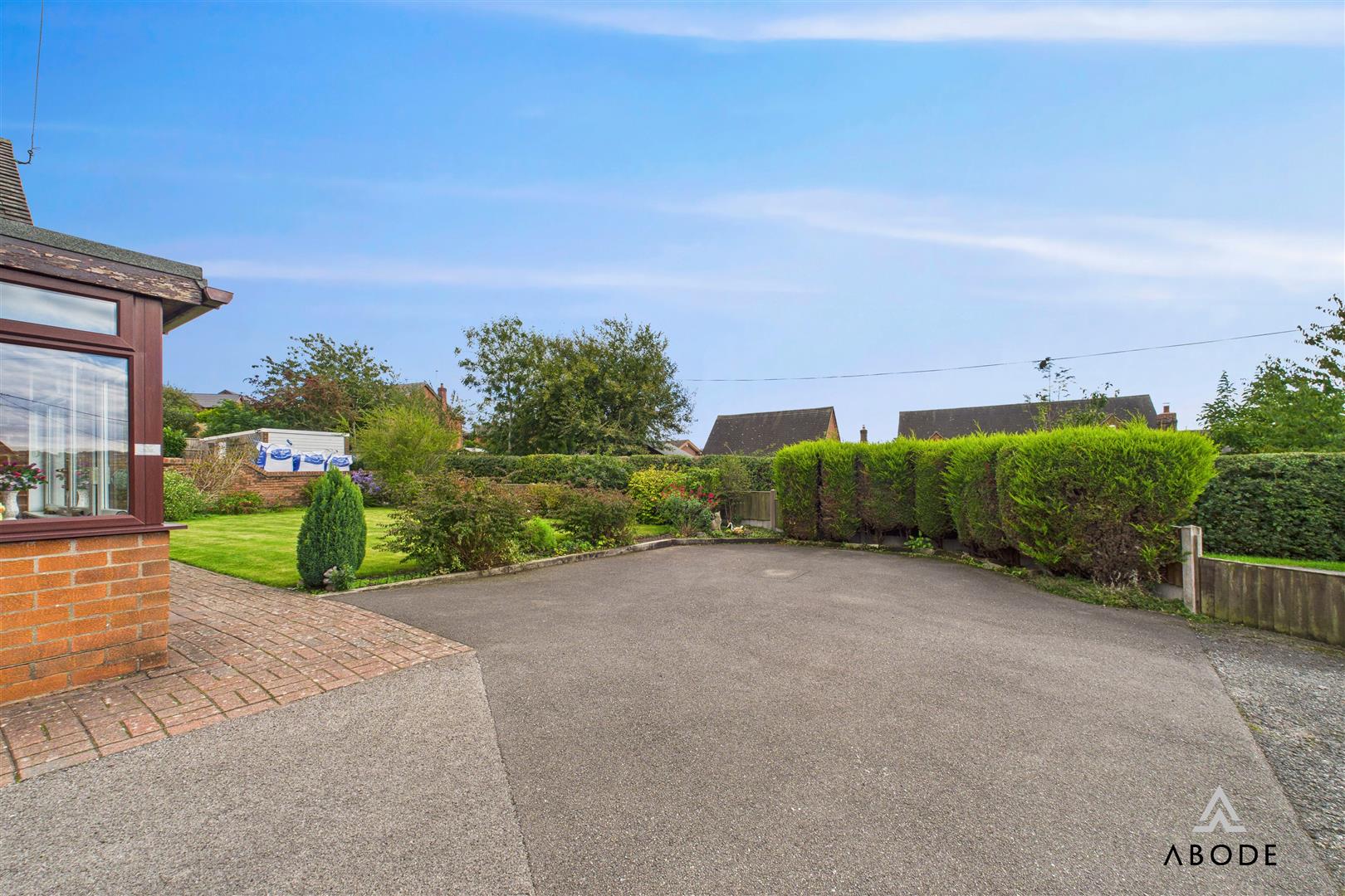 Gardens surrounding, comprising lawned, blue slate and patio areas with mature borders and hedging. Tarmacadam driveway providing ample of road parking, outside water tap.
