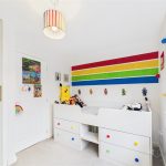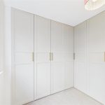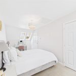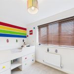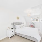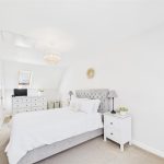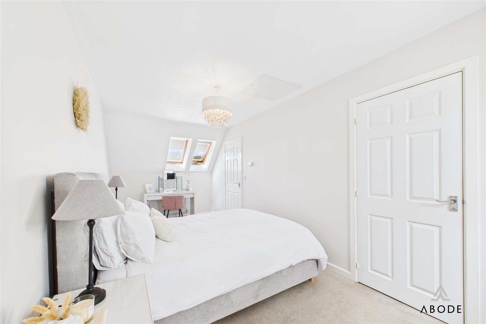 The top floor is dedicated to the master bedroom, a particularly spacious and light-filled room with three Velux-style double-glazed windows—two to the front and one to the rear. The room includes a radiator, loft hatch, and access to a generous storage cupboard, which also serves as a walk-in wardrobe with motion sensor lighting.