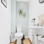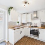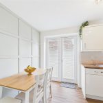 The accommodation begins with a welcoming entrance hallway providing access to the lounge and cloakroom WC. The living room is a spacious reception area with a feature fireplace, front-facing window, and a useful under-stairs storage cupboard. To the rear, the kitchen diner features matching wall and base units, ample worktop space, and a full range of integrated appliances including a fridge freezer, dishwasher, washer dryer, electric oven, and four-ring gas hob with extractor. French doors open onto the rear garden, creating a bright and airy feel. The cloakroom WC includes a wash hand basin with tiled splash back, low-level WC, heated towel rail, and extractor fan.