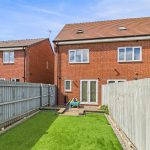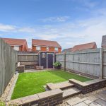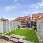 To the front of the property, there are two side-by-side allocated off-road parking spaces. A gated side path leads to the landscaped rear garden, which has been designed for low maintenance with an artificial lawn, patio seating area, raised railway sleeper borders with integrated lighting, an outdoor tap, and external power points.
