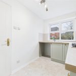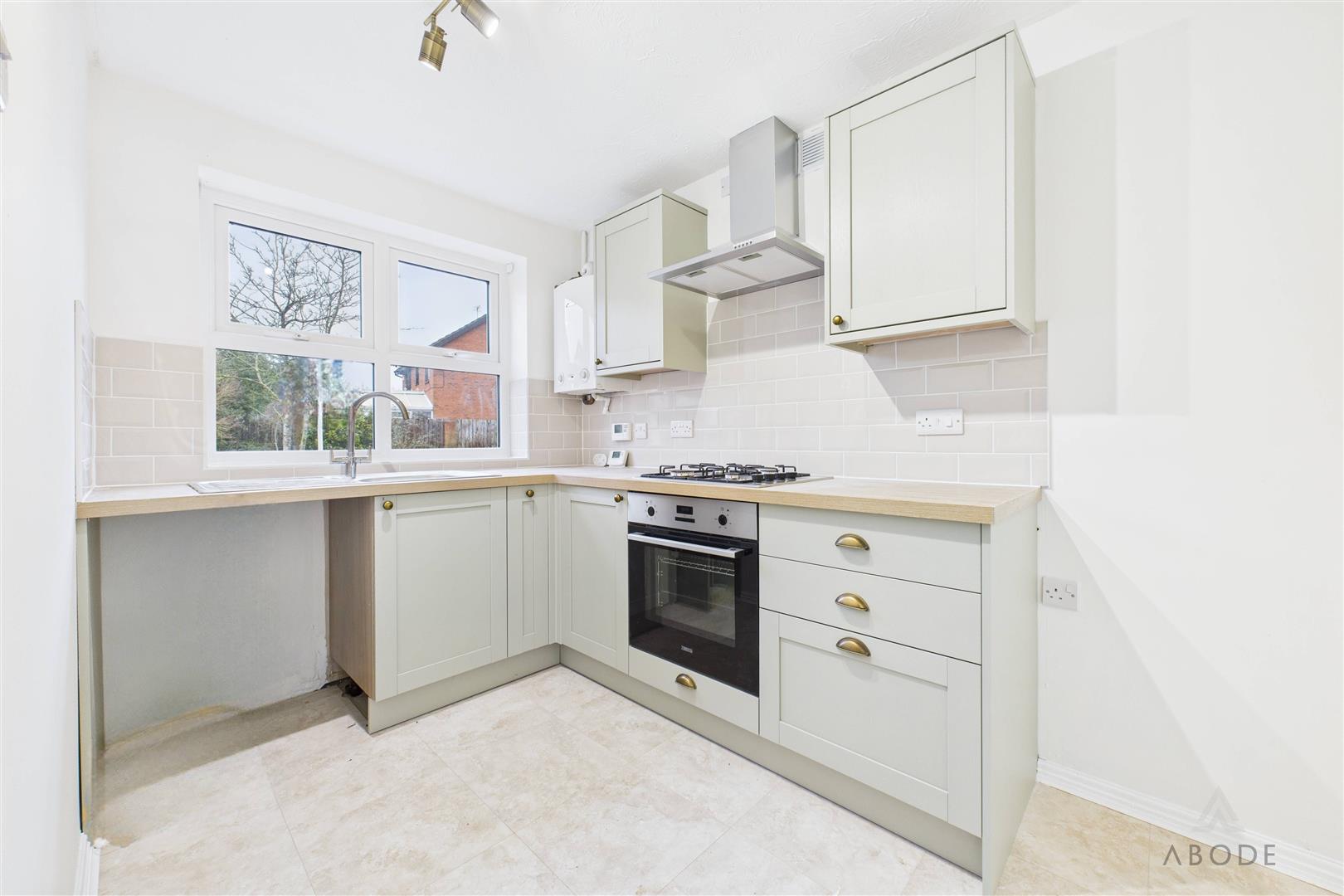 Positioned to the front elevation with a UPVC double glazed window, this newly fitted kitchen is finished to a high standard. It offers a range of matching duck-egg coloured base and eye-level storage units with drawers, complemented by block-effect drop-edge preparation work surfaces and coordinating splashbacks. There is a stainless steel sink and drainer with mixer tap, stainless steel gas hob with matching extractor hood, oven and grill, along with space and plumbing for additional freestanding white goods. The kitchen also houses the Worcester central heating gas boiler and benefits from an extractor fan.