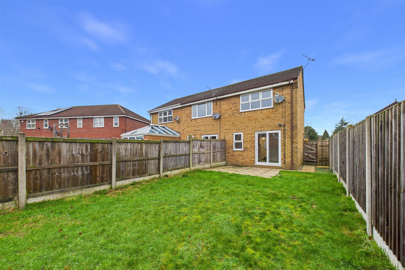 To the front of the property there is a garden area and driveway providing off-road parking, along with side access leading to the rear. The rear garden features an attractive painted patio area ideal for entertaining, opening onto a spacious garden that is mainly laid to lawn. The garden is enclosed by timber fence panels with concrete posts and offers secure side access back to the property frontage.