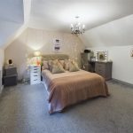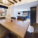 High specification kitchen with fitted wall mounted, base and drawer units with quartz work surfaces and a Belfast sink. Matching island with Oak work top, fitted smog double oven and a gas hob, integrated fridge freezer, dishwasher and wine fridge and ceiling spotlights, exposed beams, under floor heating, double doors onto the garden.