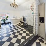 Free standing roll top and claw foot bath with central tap and shower head, low flush wc, wash hand basin, window and chrome spiral radiator.