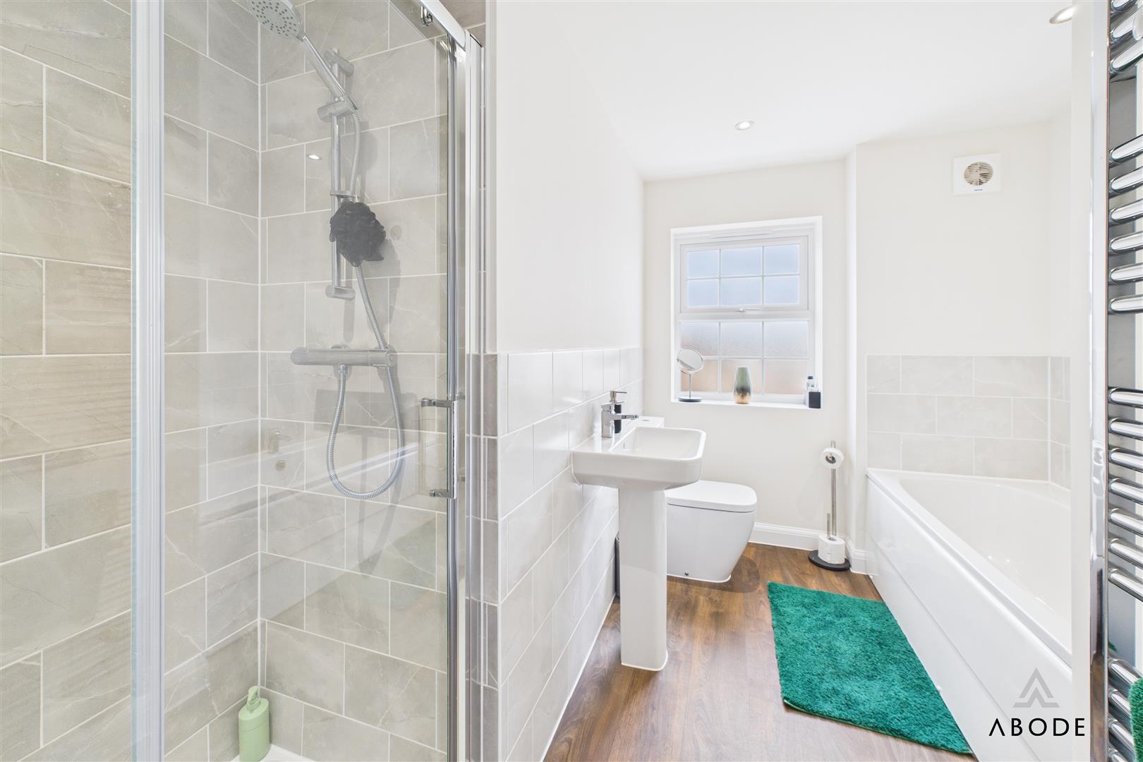 The second floor provides two substantial double bedrooms, each benefiting from dormer and Velux windows, offering an abundance of natural light. These bedrooms are served by a modern Jack and Jill bathroom complete with both bath and shower, creating ideal accommodation for older children, extended family, or guests.