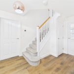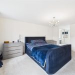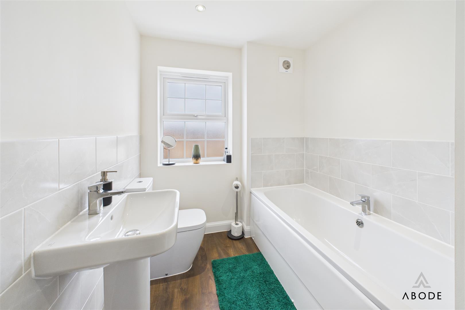 The first floor has a spacious landing with doors leading to three double bedrooms. The master suite offers generous proportions, fitted wardrobes, and a walk-in dressing area leading to a private en-suite bathroom. A further double bedroom is served by a modern family bathroom fitted with a four-piece suite including both a bath and separate shower.