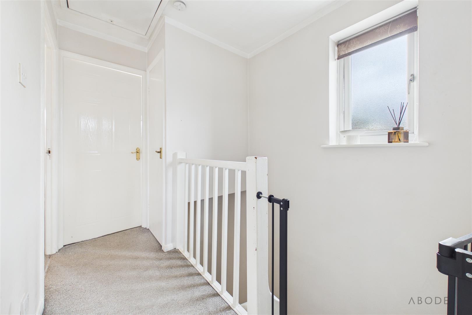 With access to the loft via hatch, smoke alarm, UPVC double glazed frosted window to the side elevation, and a useful over-stairs storage cupboard with shelving. Doors lead to all first floor rooms.