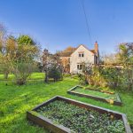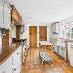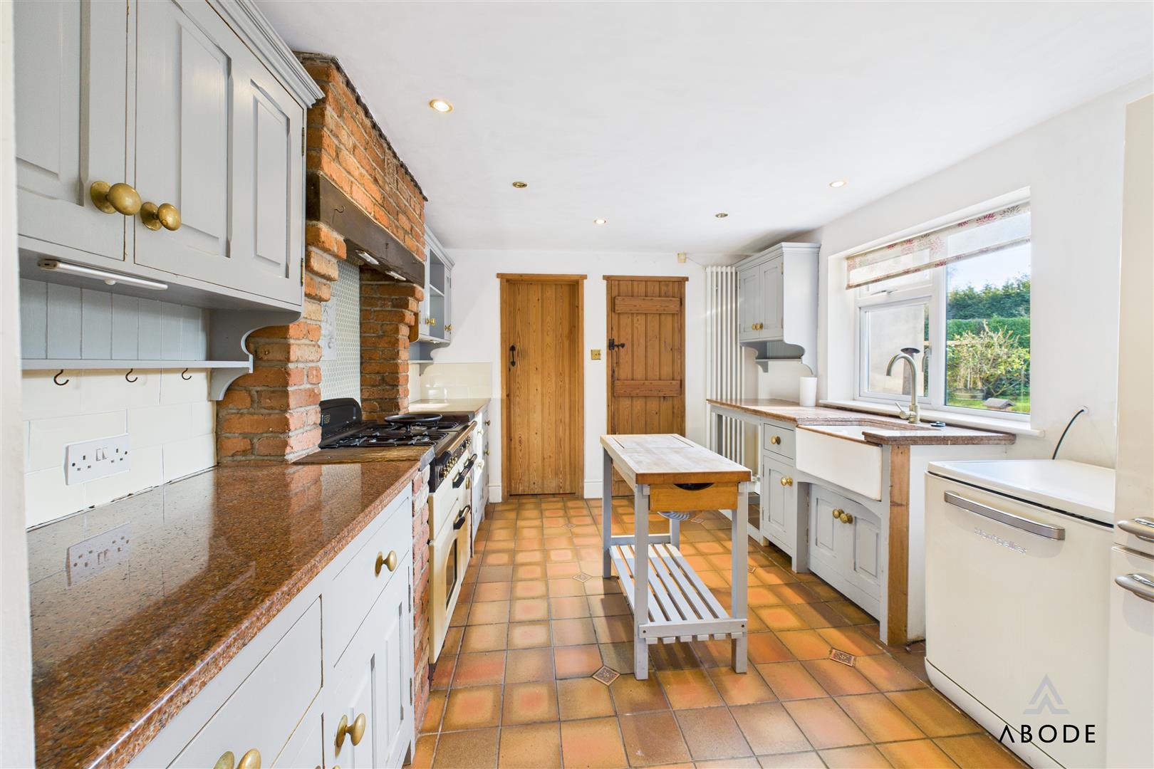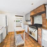 The country-style kitchen is fitted with granite work surfaces, a range of cupboards and drawers, Belfast sink, and a space for a cooker, set into a brick chimney breast. Quarry tiles extend into the breakfast room, which enjoys a pleasant outlook over the side garden. A utility room provides further appliance space, with an adjoining guest cloakroom fitted with a modern suite.