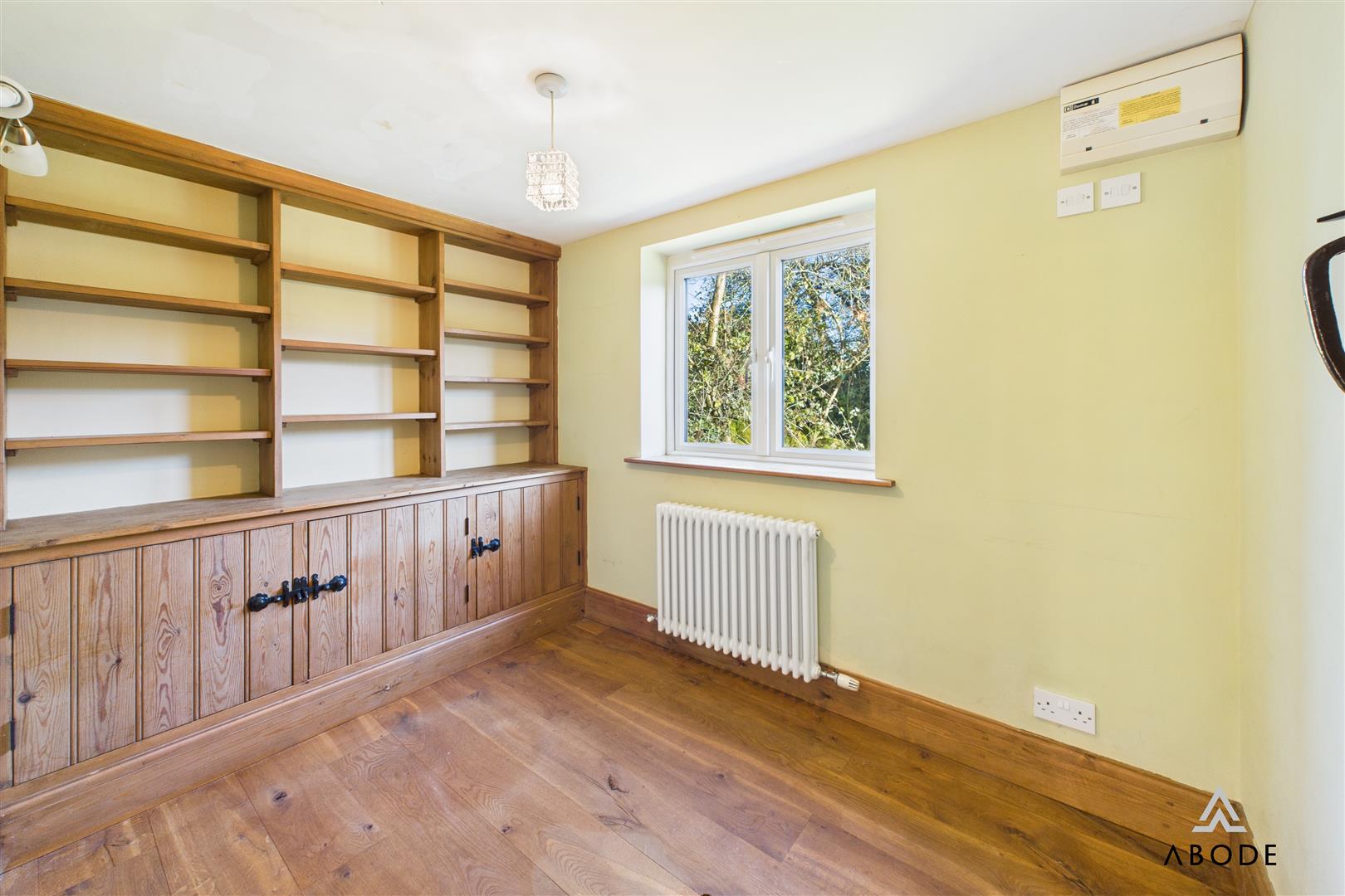 A separate study offers a quiet workspace, complete with fitted shelving and cupboards.
