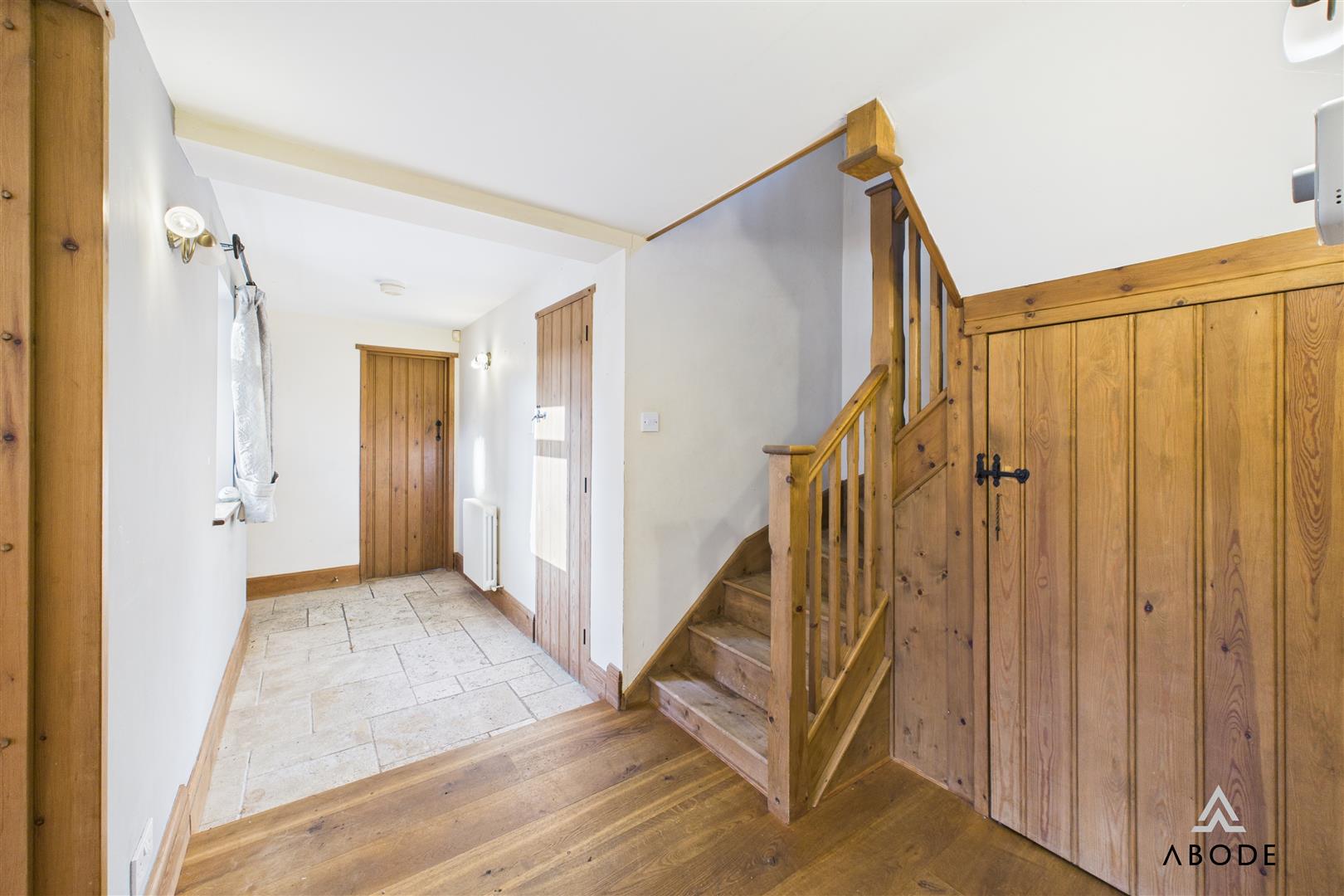 Internally, the home blends traditional features with practical living space. The reception hallway provides an inviting entrance, with a staircase rising to the first floor and latched internal doors leading through to the main ground floor rooms.