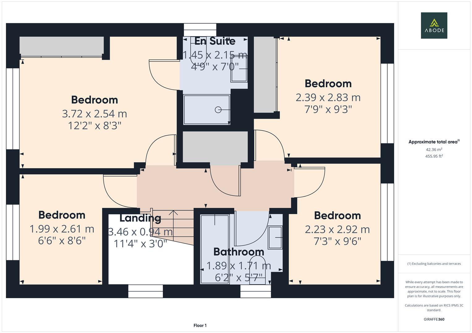 Panel enclosed bath with a shower and shower screen, low flush wc, wash hand basin, radiator and upvc double glazed window.