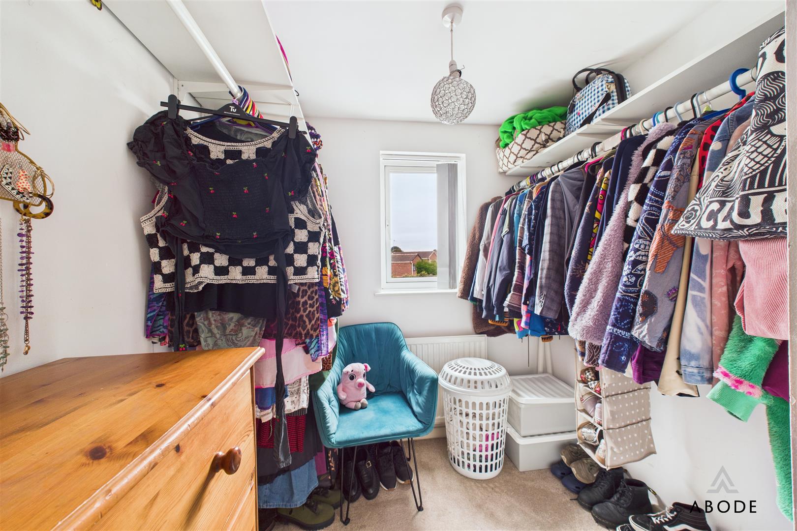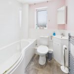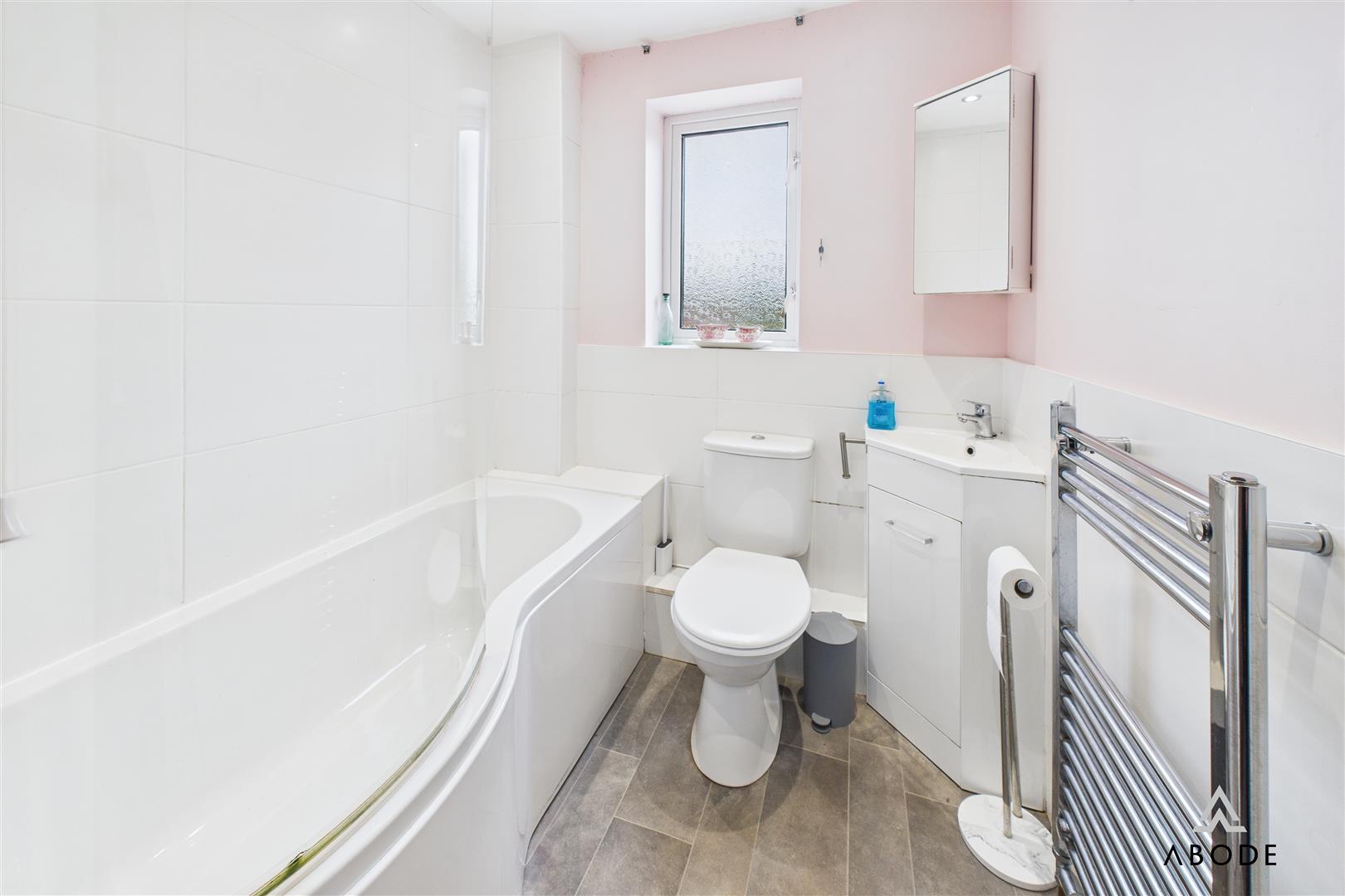 The landing gives access to three well-proportioned bedrooms and the family bathroom. The master bedroom is positioned to the front aspect and offers a generous size with space for bedroom furniture. The second bedroom, another double, is located to the rear, while the third bedroom is a good-sized single currently utilised as a dressing room. The family bathroom is finished with a modern three-piece suite, comprising a panelled bath with shower and curved glass screen, low-level WC, and wash-hand basin set within a vanity unit, complemented by tiled walls and flooring.