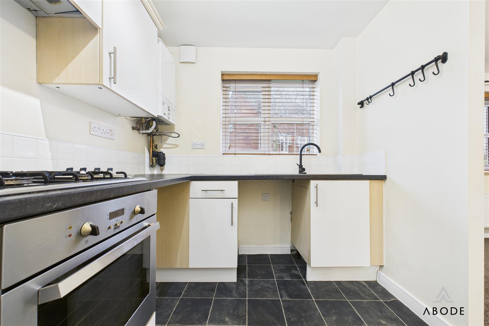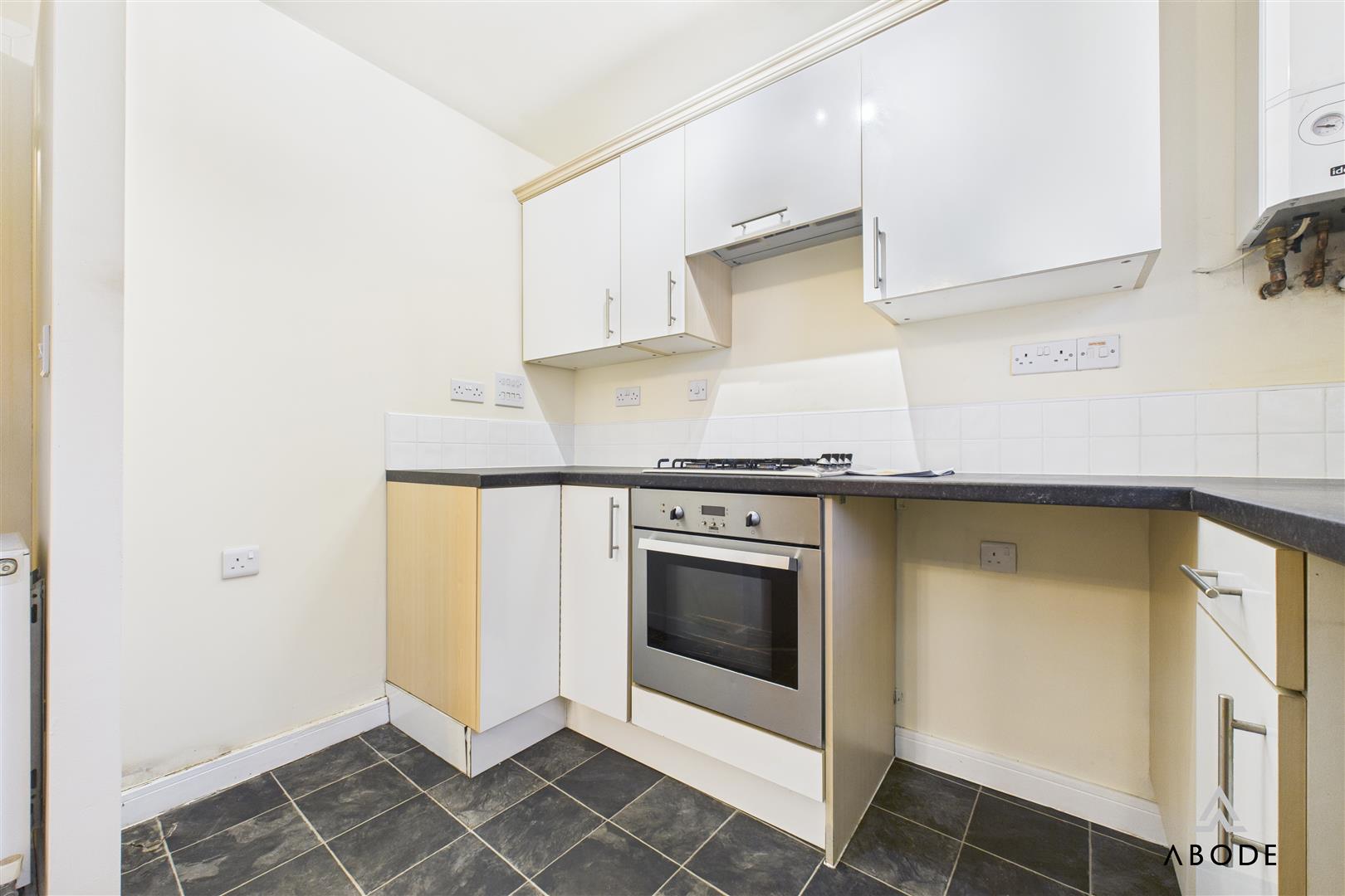 The kitchen benefits from a UPVC double glazed window to the front elevation and is fitted with a range of matching base and eye-level storage cupboards and drawers, complemented by drop-edge preparation work surfaces and tiled surrounds. Integrated appliances include a four-ring stainless steel gas hob with matching oven and grill, extractor fan, and a stainless steel sink with drainer and mixer tap. There is space and plumbing for freestanding and under-counter white goods, along with a central heating combination gas boiler. An opening leads through to the lounge diner.