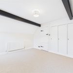 A characterful room with two uPVC double glazed windows to the side elevation and exposed beamwork to the ceiling. The room also benefits from a central heating radiator and a range of fitted wardrobes and drawers with additional eye-level shelving.