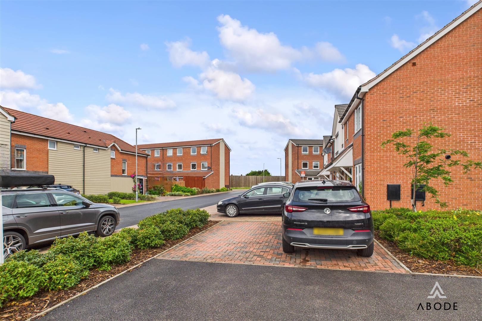 To the front of the property is a block-paved parking area providing off-street parking, alongside a low-maintenance planted border. A gated side path leads to the rear garden, which is fully enclosed and designed with ease of maintenance in mind. It features a paved patio, gravelled area, and a raised decked seating space—ideal for relaxing or entertaining outdoors.