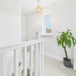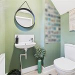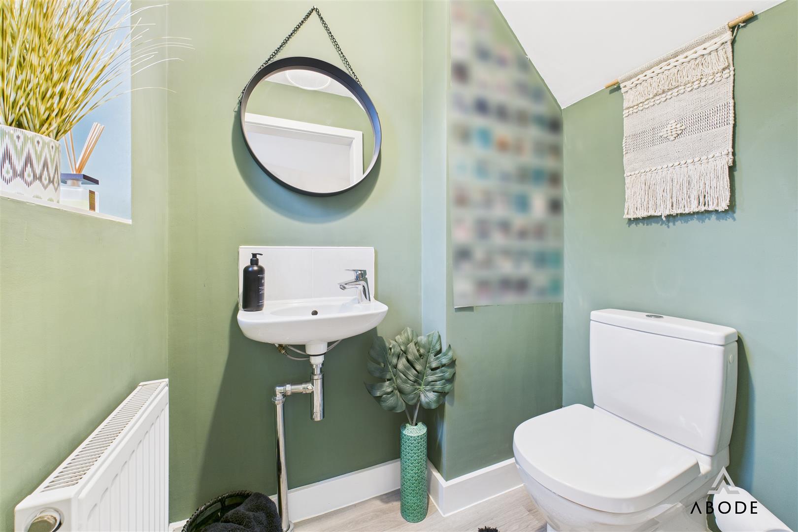 Fitted with a low-level WC with continental flush and a floating wash hand basin with mixer tap and tiled splashback. The room benefits from a frosted uPVC double-glazed window to the rear elevation, a central heating radiator, and an extractor fan.