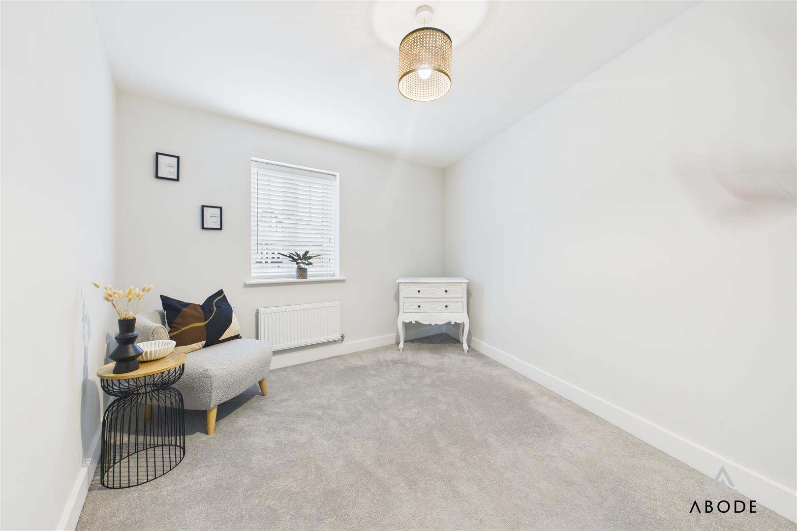 A well-proportioned second bedroom with a uPVC double-glazed window to the front elevation and a central heating radiator.