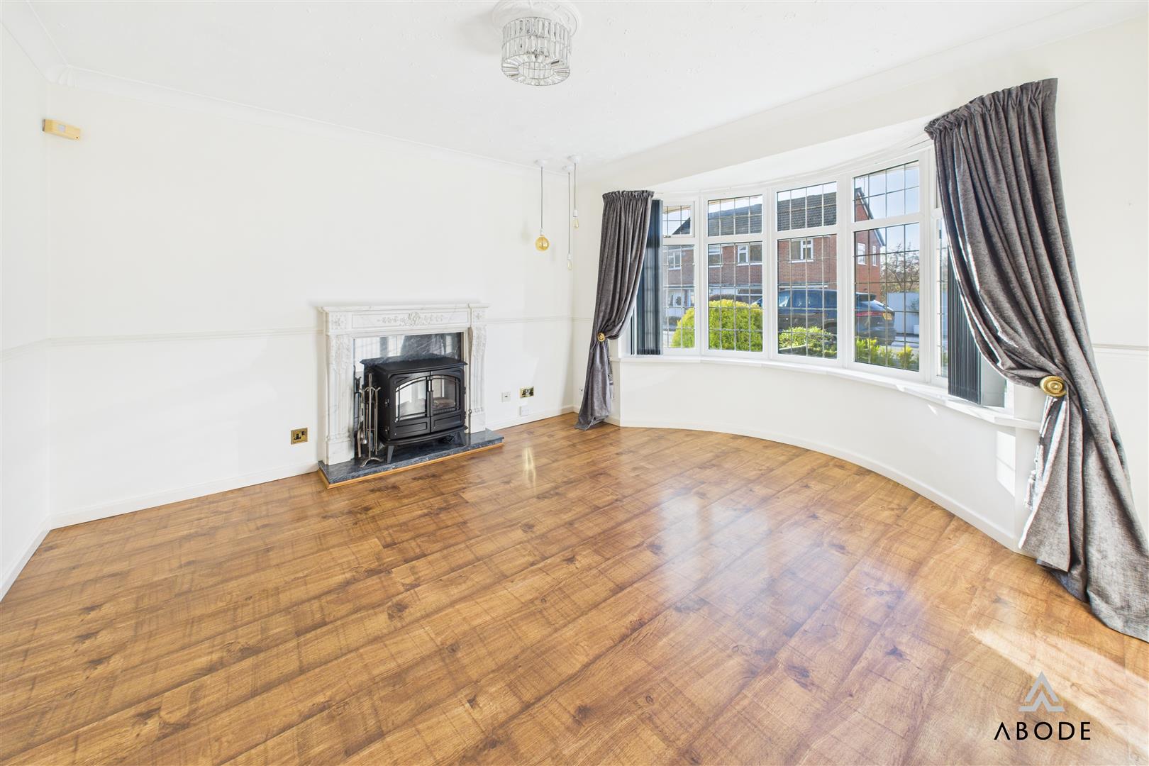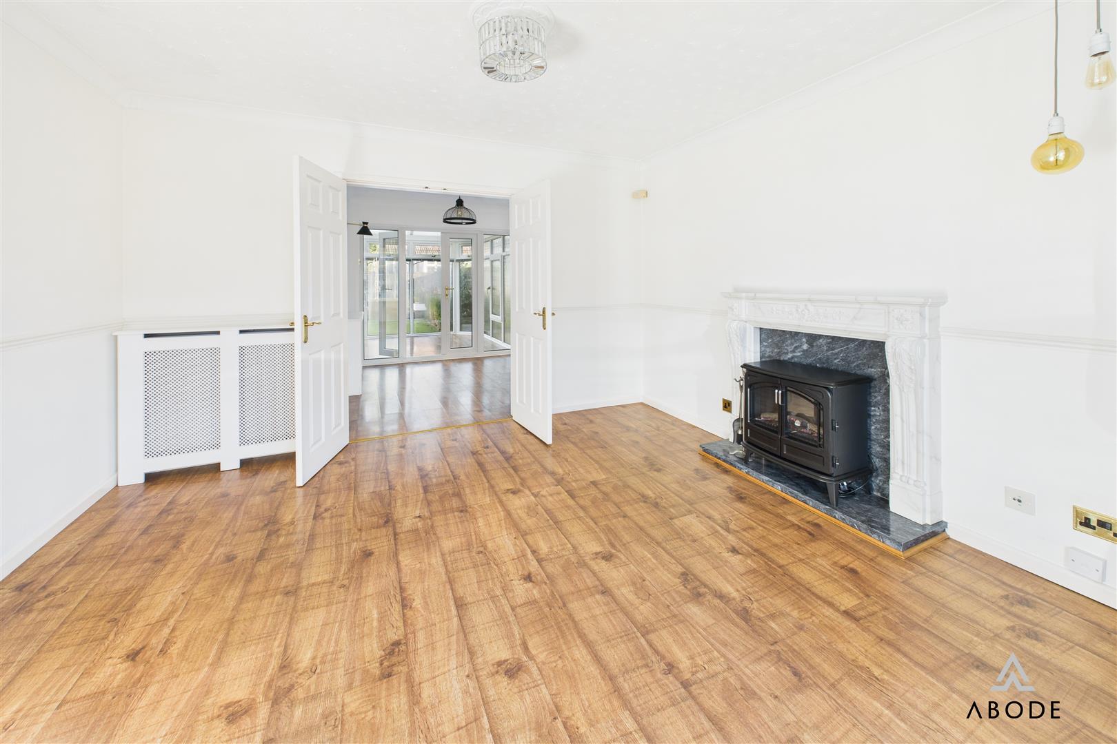 Feature fireplace and electric stove style fire, also a gas point. Wood effect flooring, radiator, upvc double glazed bay window to the front and double doors into the dining room.