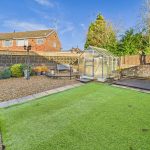 The front offers a lawn with shrubs and bushes. Ample parking and side gated to the enclosed rear garden offering an artificial lawn, paved and stone seating areas, useful side bin store and a green house.