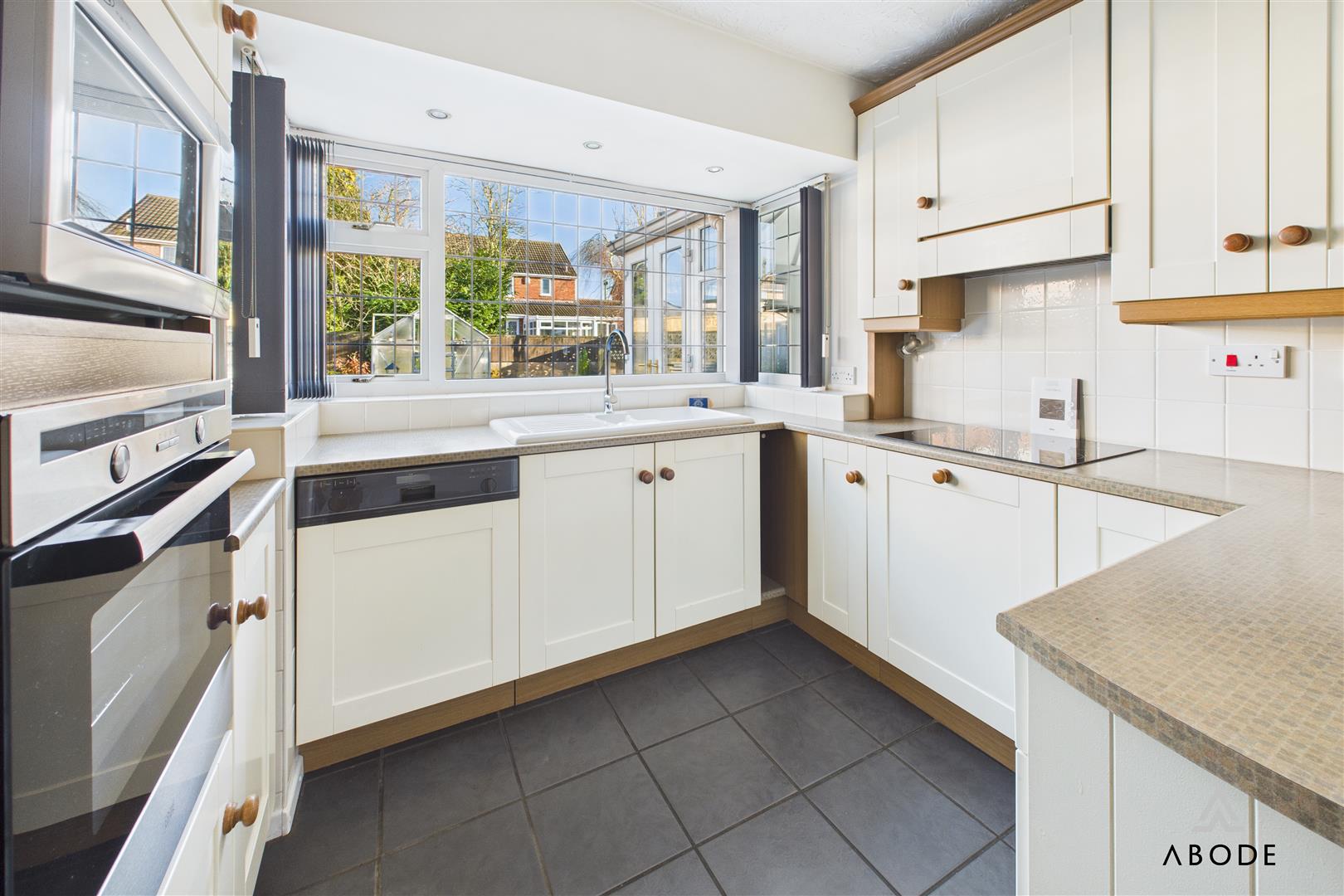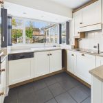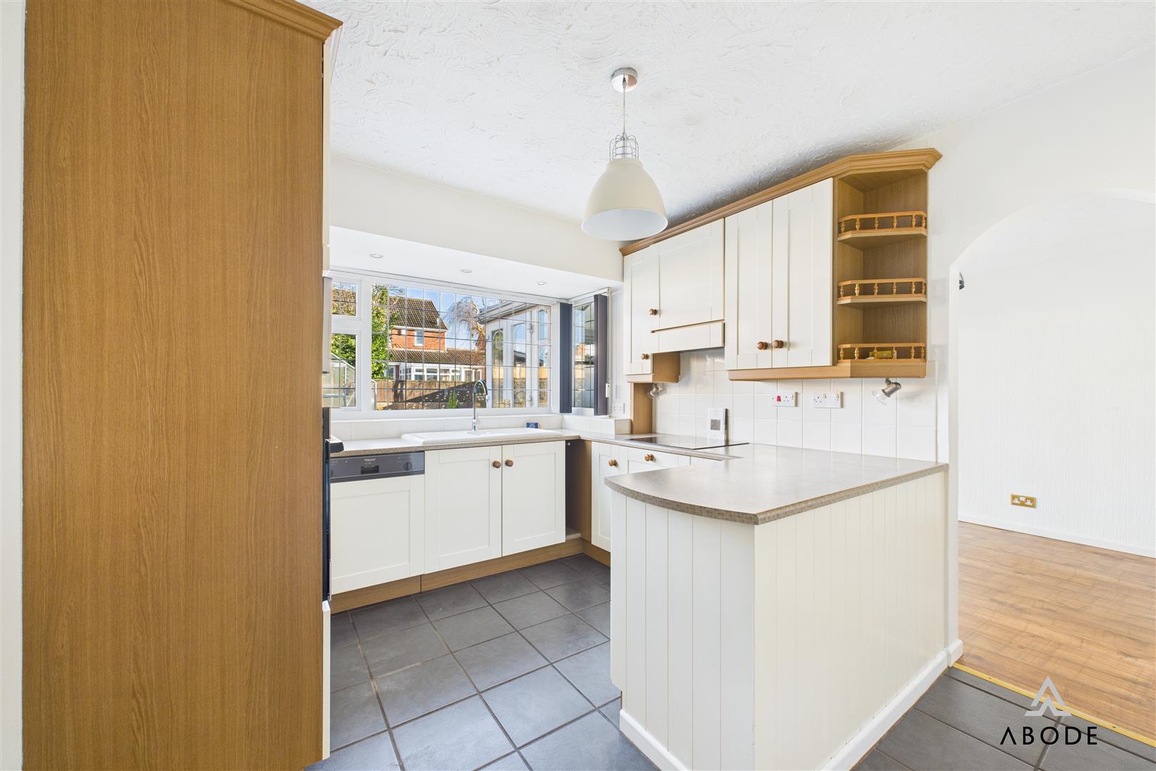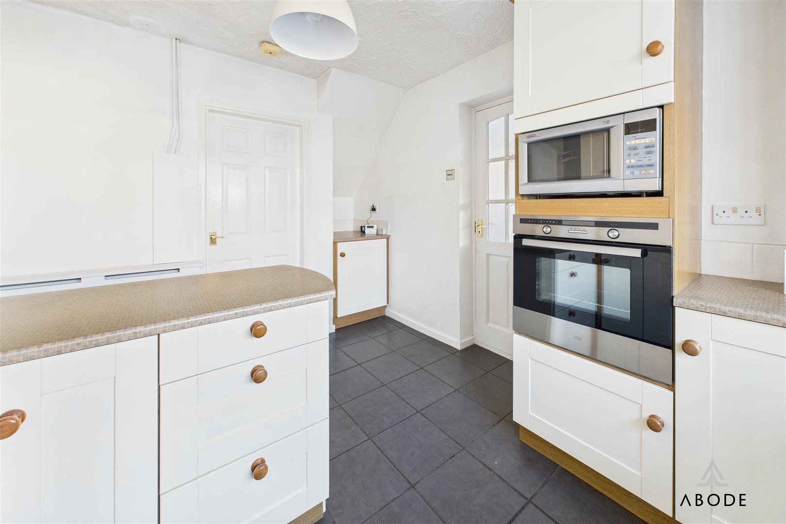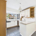 Fitted wall mounted, base and drawer units with work surfaces and breakfast bar. Ceramic sink and drainer unit with mixer tap, fitted electric oven and hob with extractor. Integrated dishwasher, upvc double glazed window, tiled floor and doors to the hall and utility room.