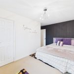 There are two bedrooms, including a generous master bedroom with space for wardrobes and a second bedroom ideal as a guest room, nursery, or home office. The family bathroom is fitted with a three-piece suite comprising a panelled bath with shower over, wash hand basin, low-level WC, tiled splashbacks, and a chrome heated towel rail.