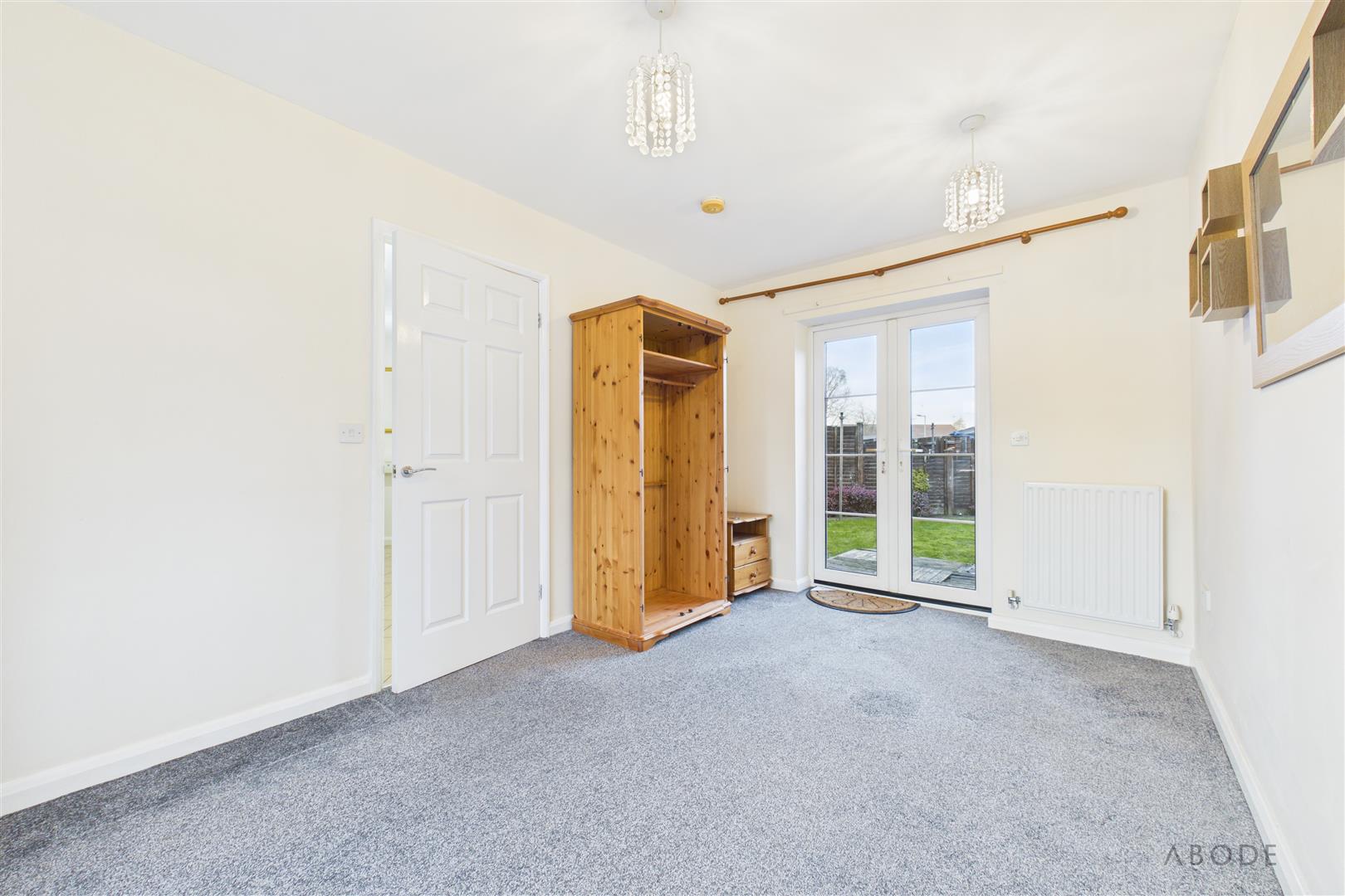 A bright and spacious reception room enjoying a UPVC double glazed box bay window to the front elevation and UPVC double glazed French doors opening onto the rear garden. The room benefits from two central heating radiators and a TV aerial point.