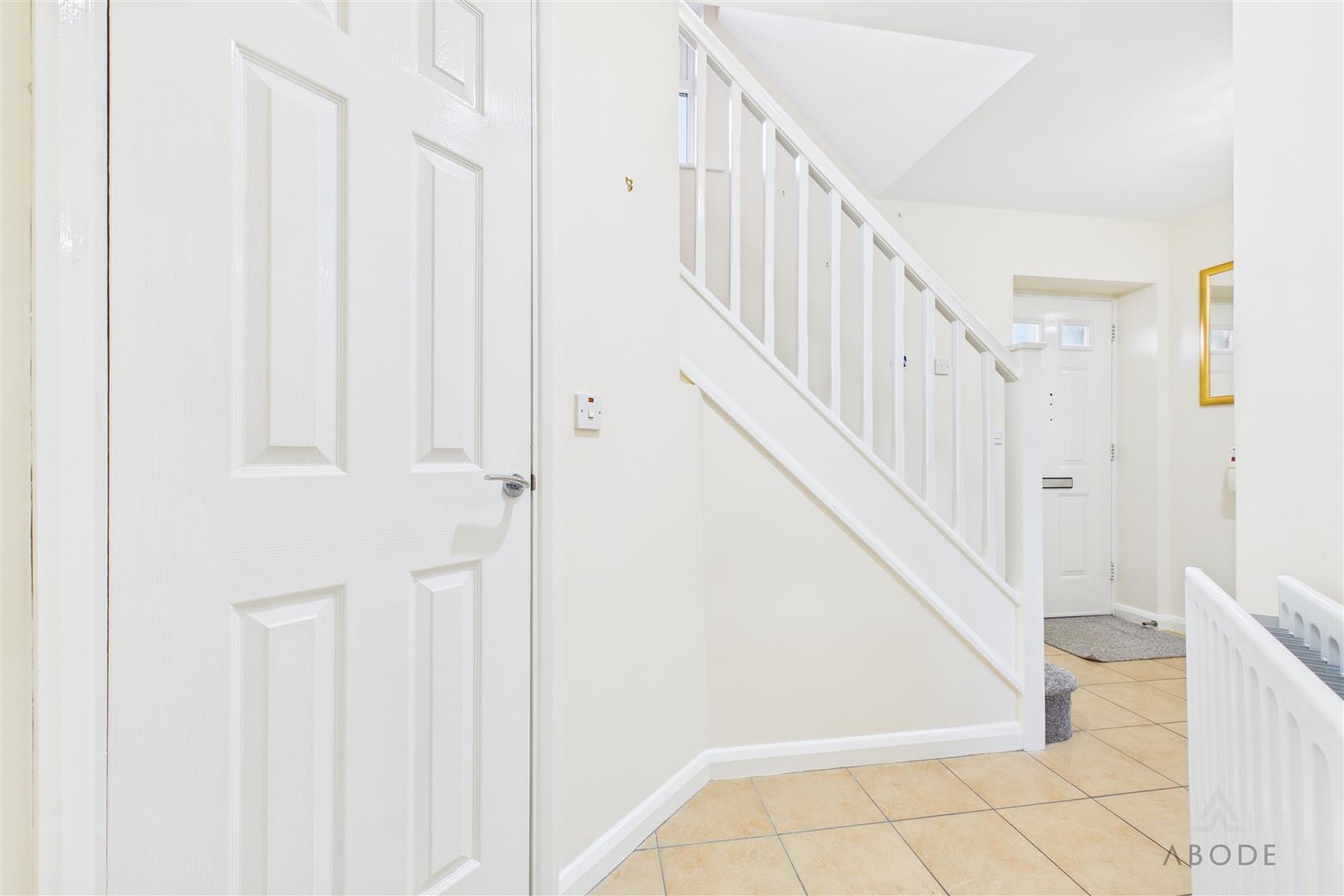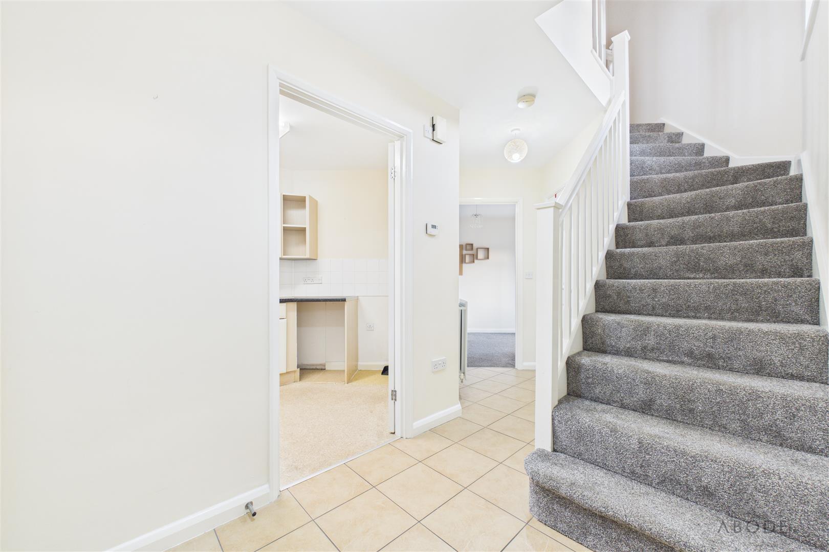 Entered via a PVC front entrance door, the welcoming hallway features a central heating radiator, thermostat control, electrical consumer unit, doorbell chime, and smoke alarm. A useful understairs storage cupboard with lighting and coat hooks provides practical storage, and a staircase rises to the first floor landing. Internal doors lead to:
