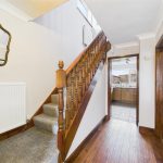 UPVC double glazed door leading in from the porch, central heating radiator, stairs leading to the first floor, storage cupboard, wooden flooring.