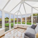 UPVC double glazed windows surrounding and patio doors leading out into the garden, tiled flooring.