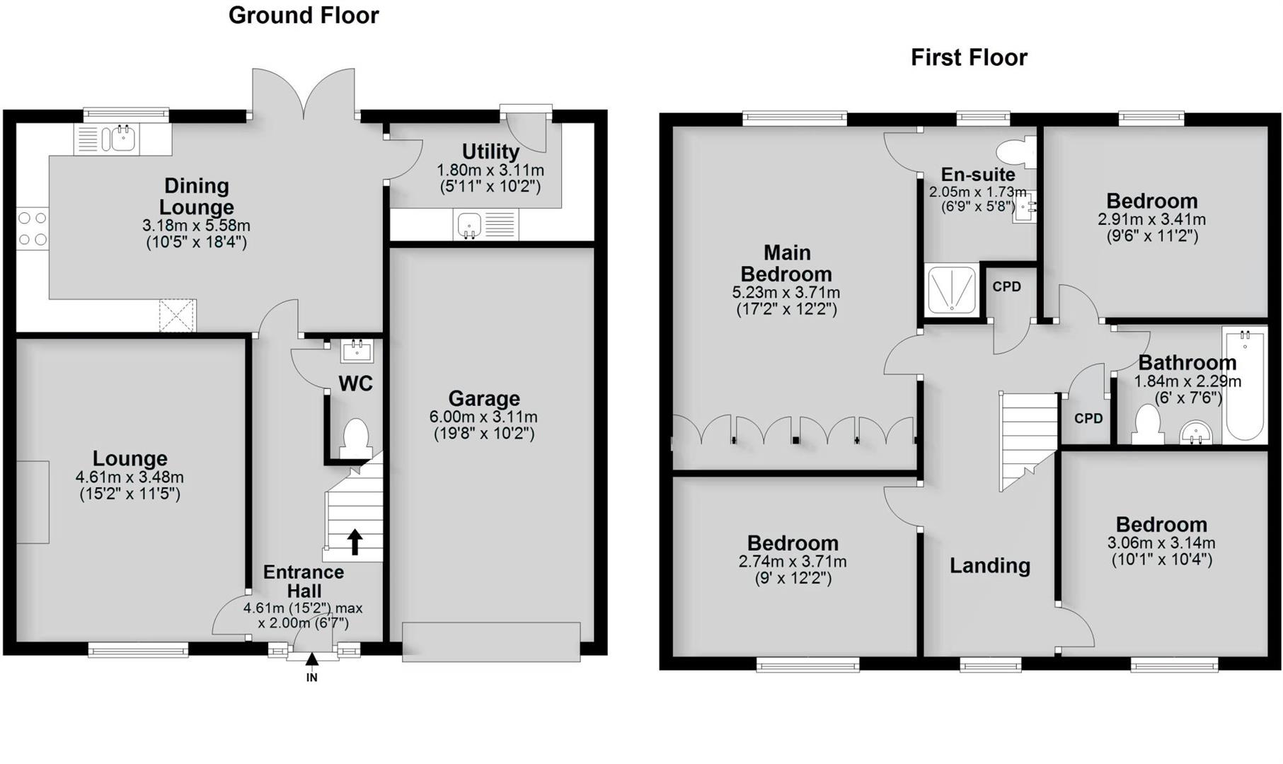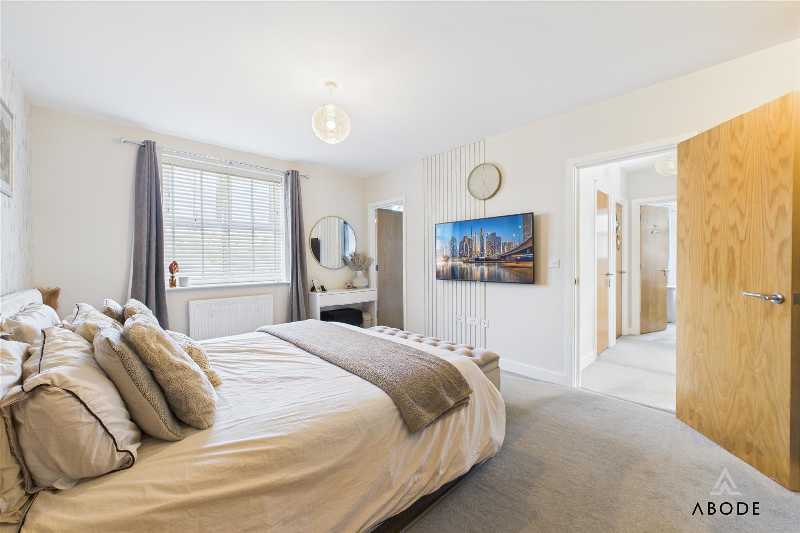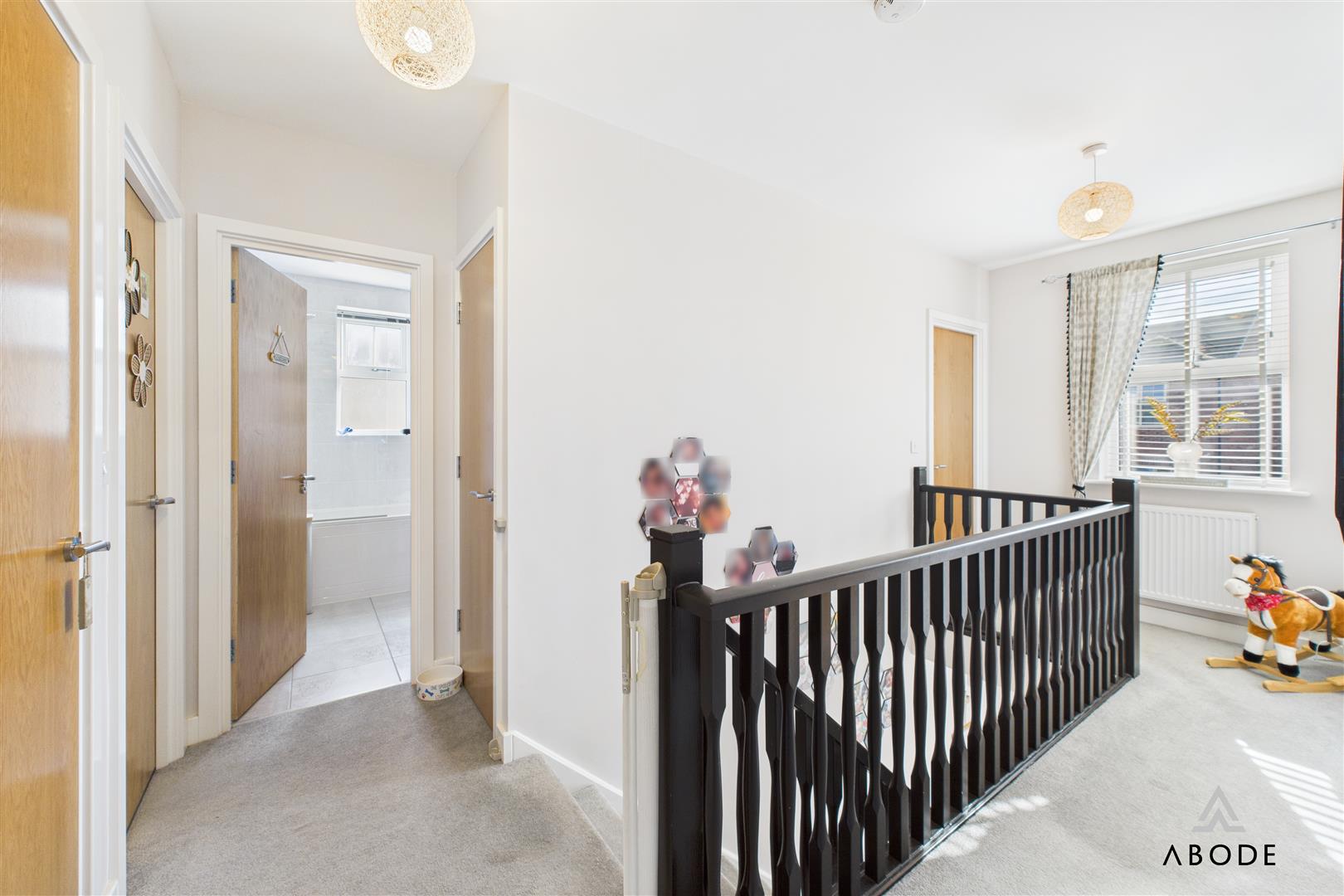 On the first floor, the landing leads to four well-proportioned double bedrooms, each finished with tasteful décor. The principal bedroom features fitted wardrobes and a stylish en-suite shower room, while a modern family bathroom serves the remaining bedrooms.