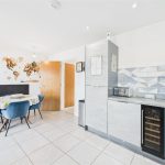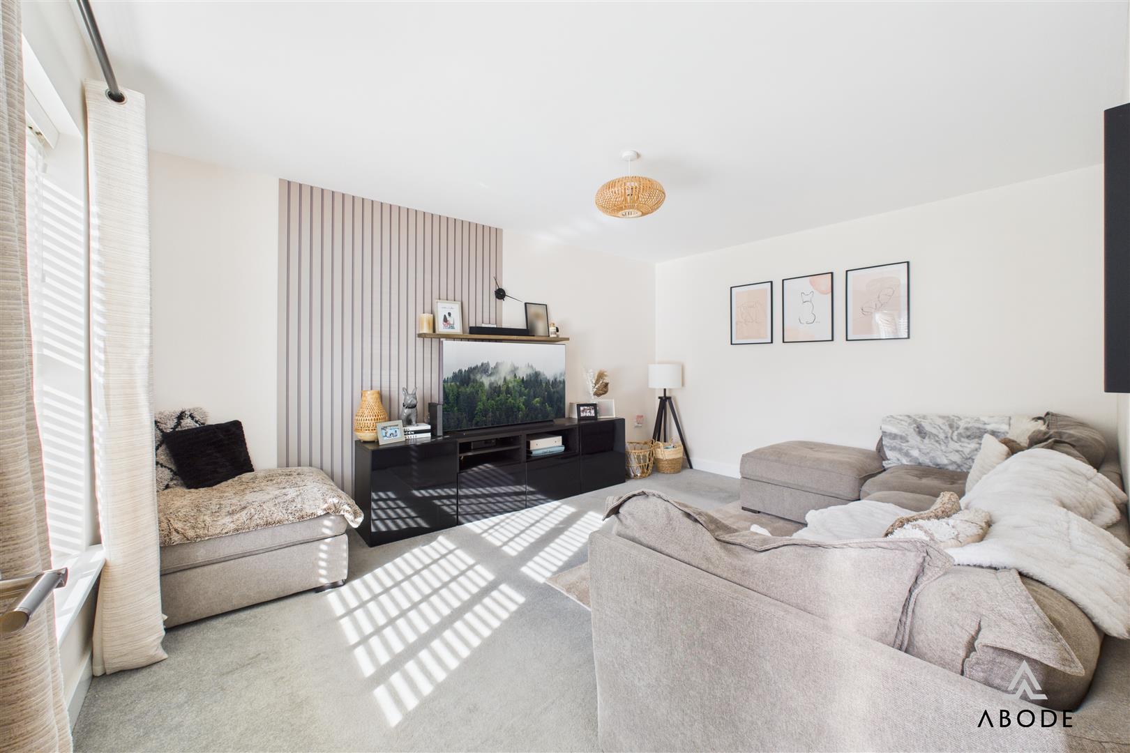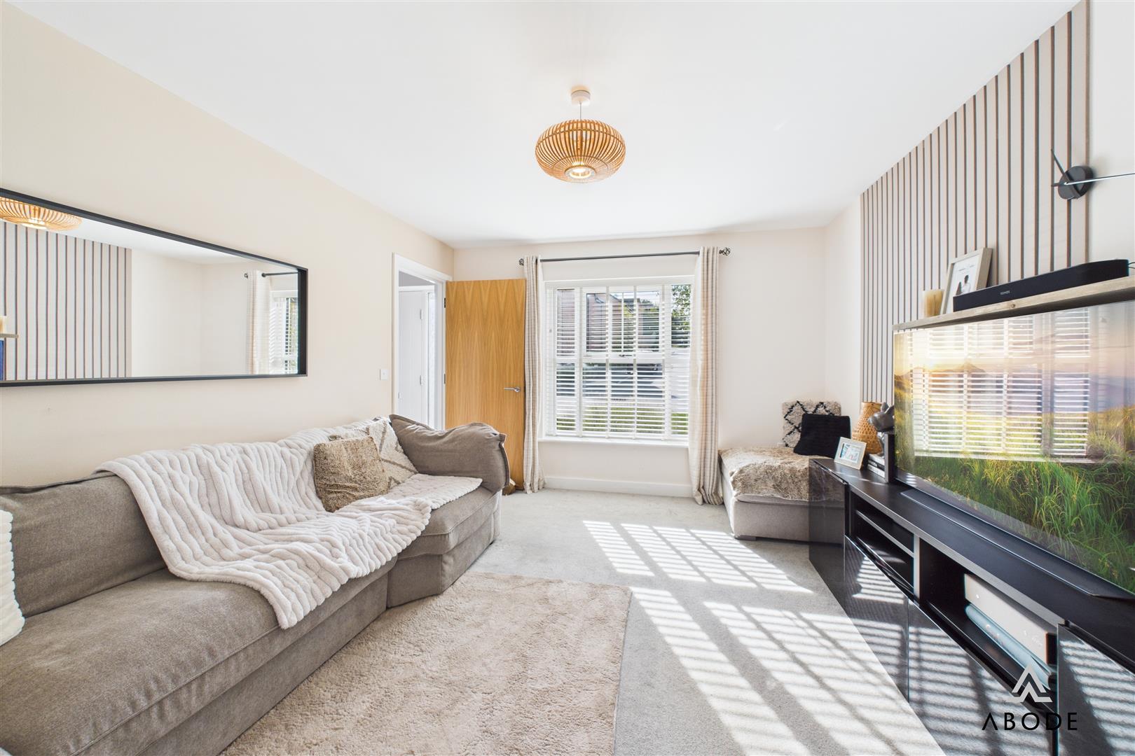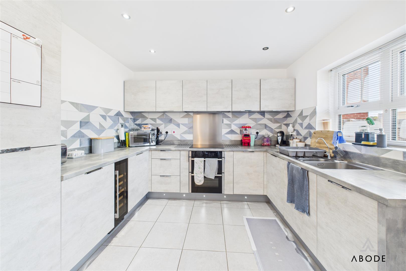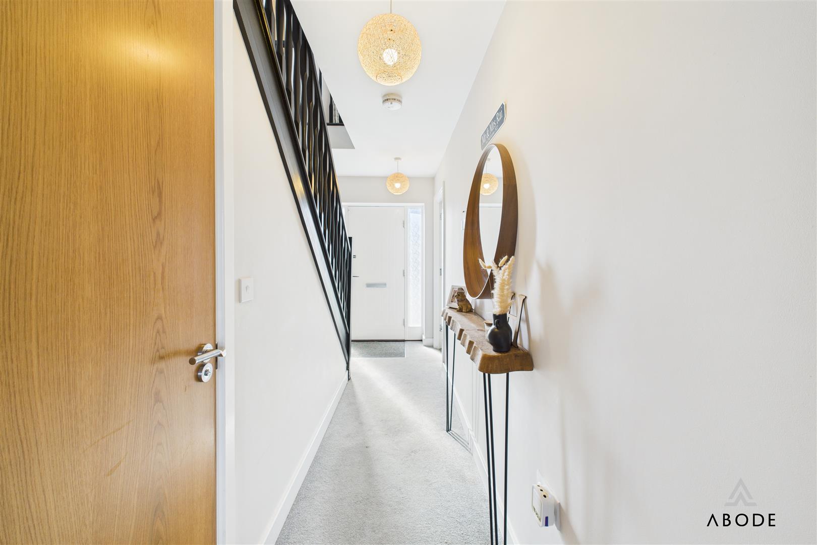 The accommodation begins with a welcoming entrance hallway that sets the tone for the quality found throughout. To the front, the living room is a bright and generous space, enhanced by a large window drawing in natural light. To the rear, the open-plan kitchen diner forms the heart of the home, fitted with high-specification appliances and a contemporary design. French doors open directly onto the garden, creating a seamless link between inside and out, while a separate utility room adds further practicality with its additional storage and garden access.