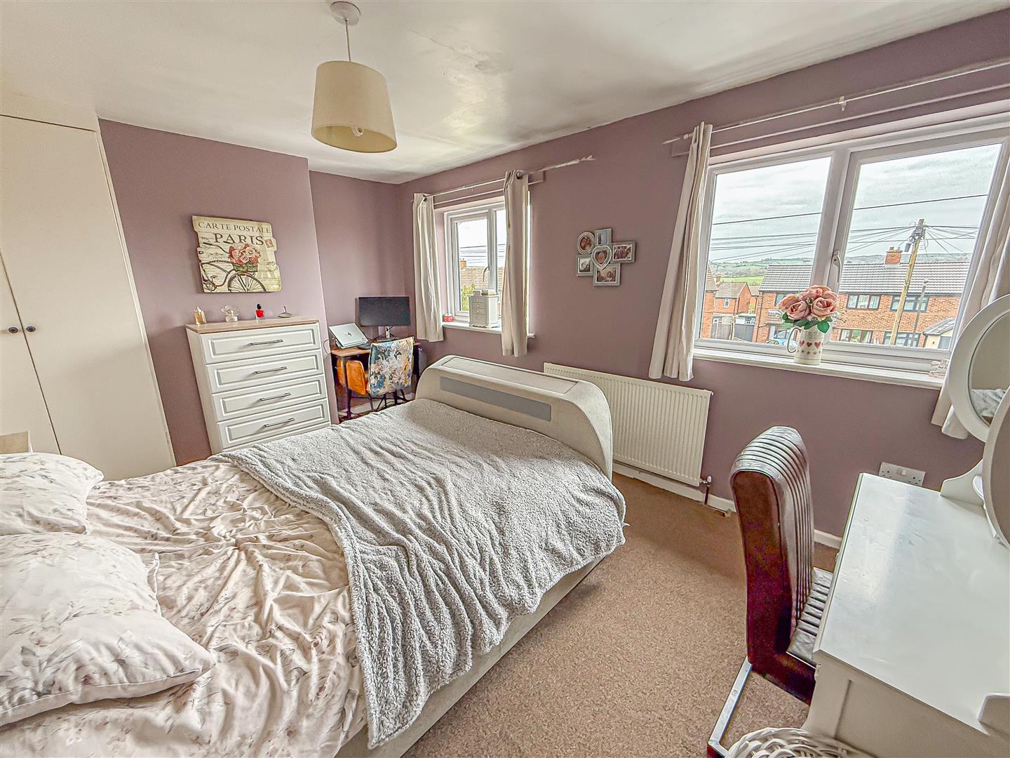 Two upvc double glazed windows and a radiator.