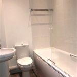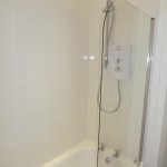 Panel enclosed bath with shower and shower screen, low flush wc, wash hand basin and radiator.