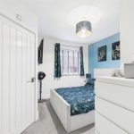 With a UPVC double glazed window to the front elevation, built-in double wardrobe with mirrored front, hanging rails and shelving, useful over stairs storage cupboard, door leading to:
