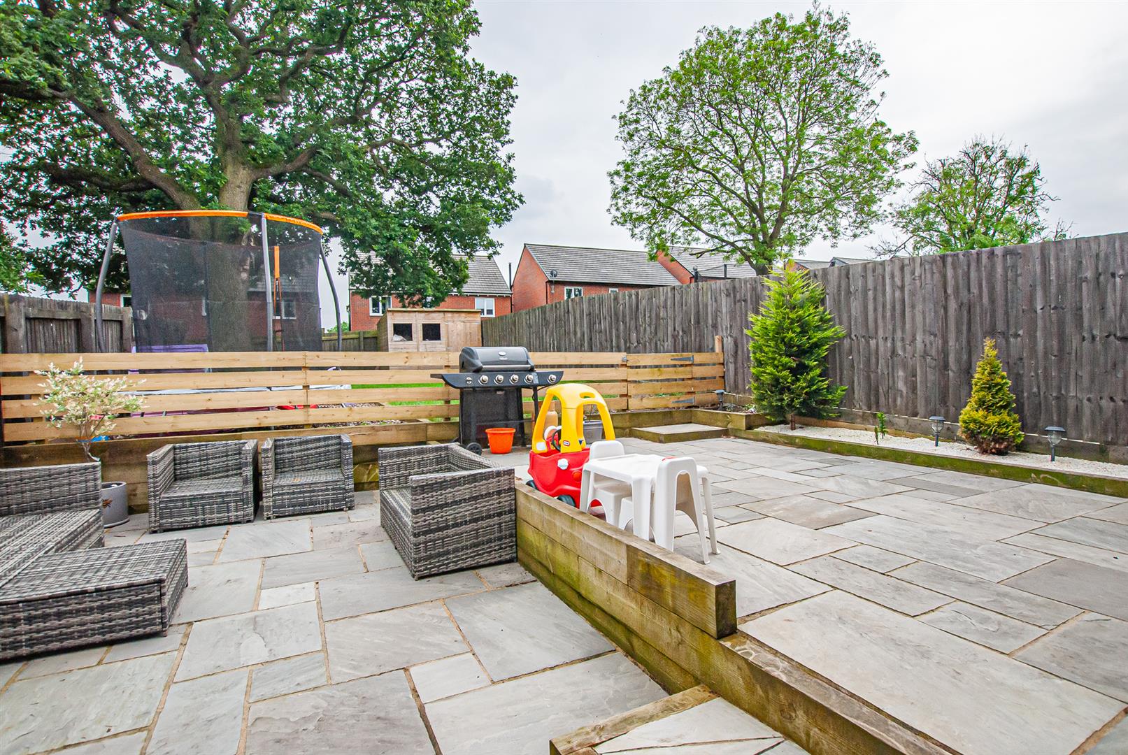 To the rear elevation is an extended paved patio area, garden which is mainly laid to lawn, having a variety of mature shrubs and plants.