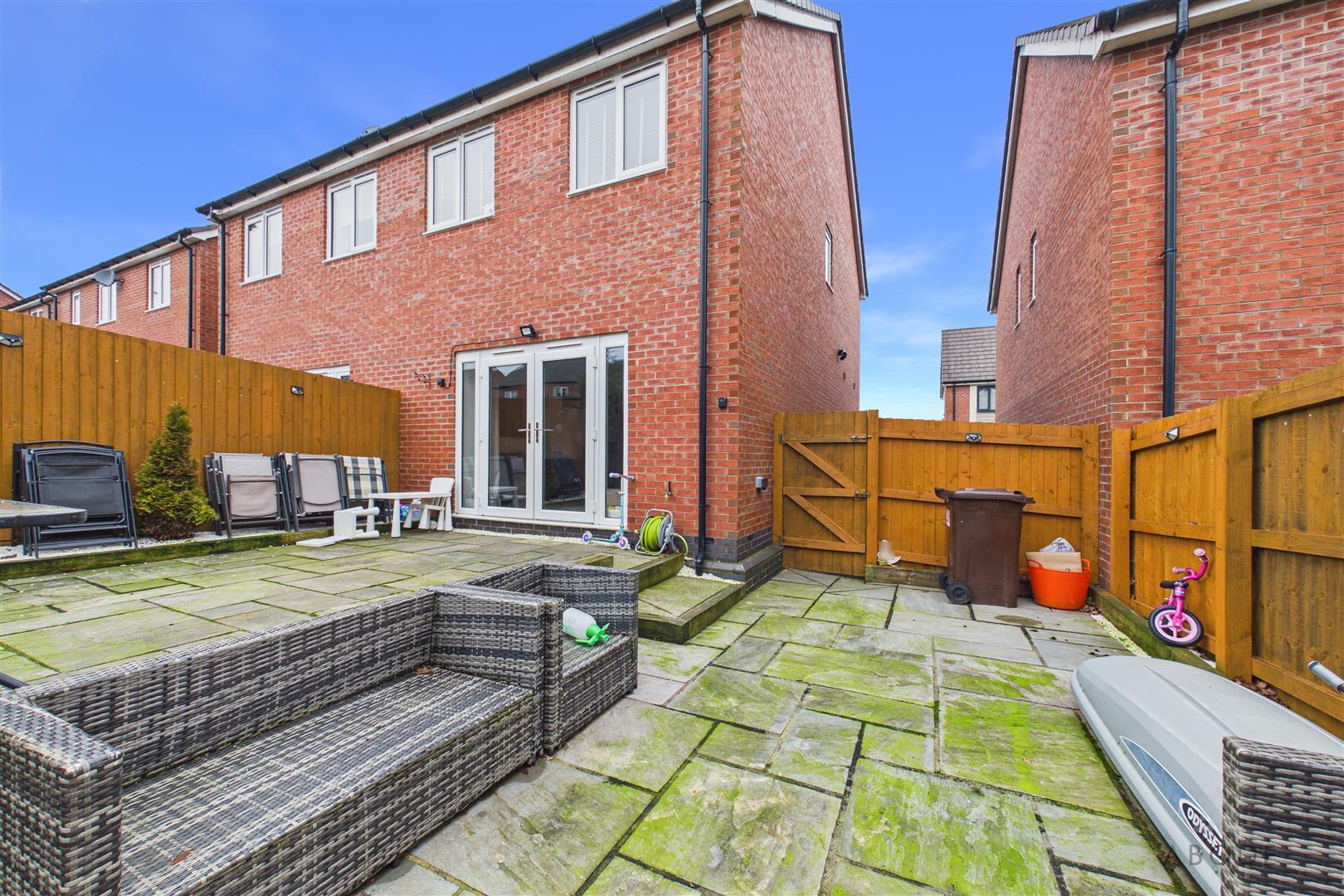 With UPVC double glazed French doors leading to the rear patio with UPVC double glazed windows to the rear elevation, TV aerial point, telephone point, two central heating radiators, useful under stairs storage cupboard