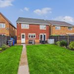 To the front, the property features a driveway providing off-street parking and access to the integral garage with roller shutter door. The frontage also includes low-maintenance shrub planting.