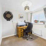 Bedroom two is a spacious double to the rear, while bedroom three sits to the front and offers excellent versatility as a children’s room or guest room. Bedroom four, overlooking the front, is currently arranged as a home office but remains an ideal single bedroom or nursery.