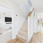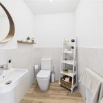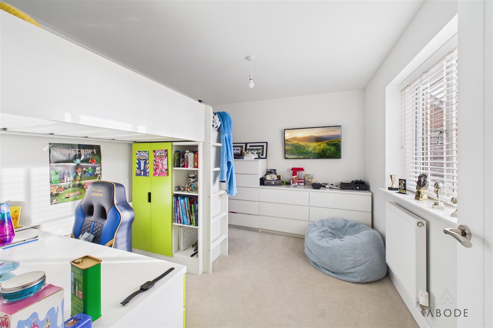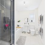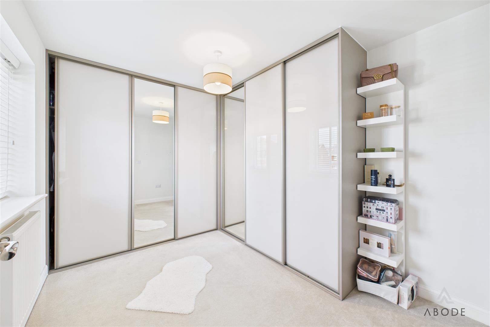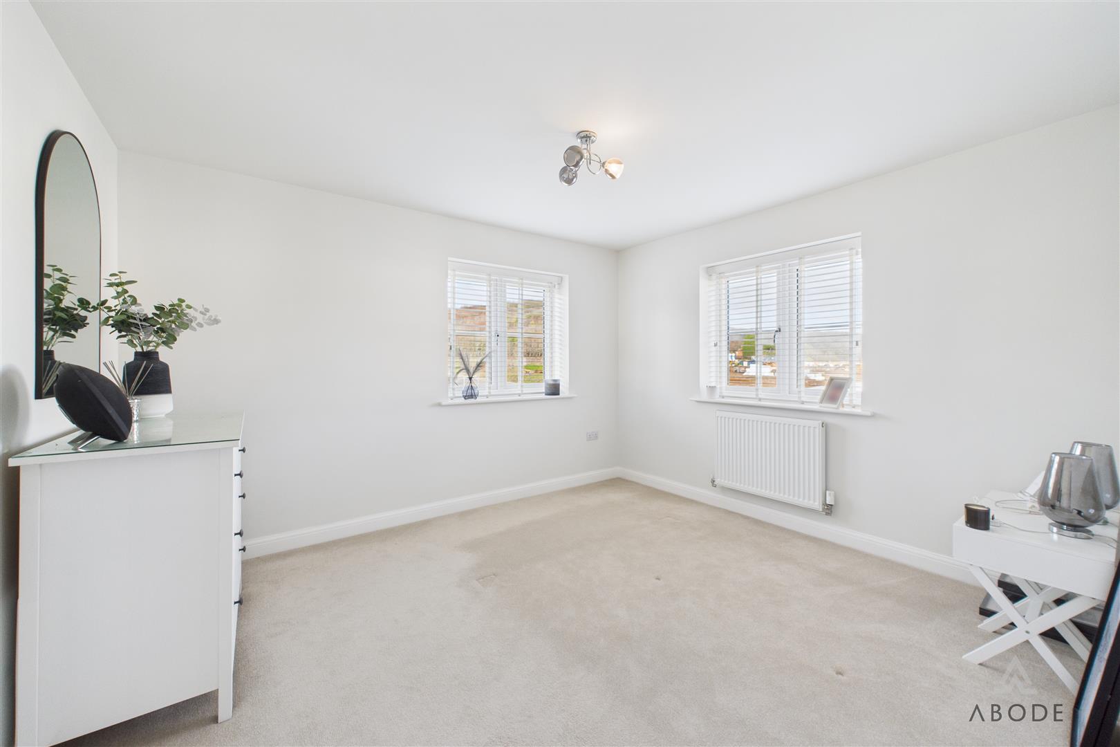 To the first floor, the accommodation is arranged around a semi-galleried landing with modern balustrade, airing cupboard, and window providing natural light. The principal bedroom is a well-proportioned double room and benefits from a superbly appointed en-suite shower room with contemporary sanitary ware, fully tiled walls and floor, chrome towel rail, and window for ventilation. Three further good-sized bedrooms complete the sleeping accommodation, offering flexibility for family use, guests, or dressing rooms, and are served by a well-appointed family bathroom fitted with a modern white suite including both a bath and separate shower.
