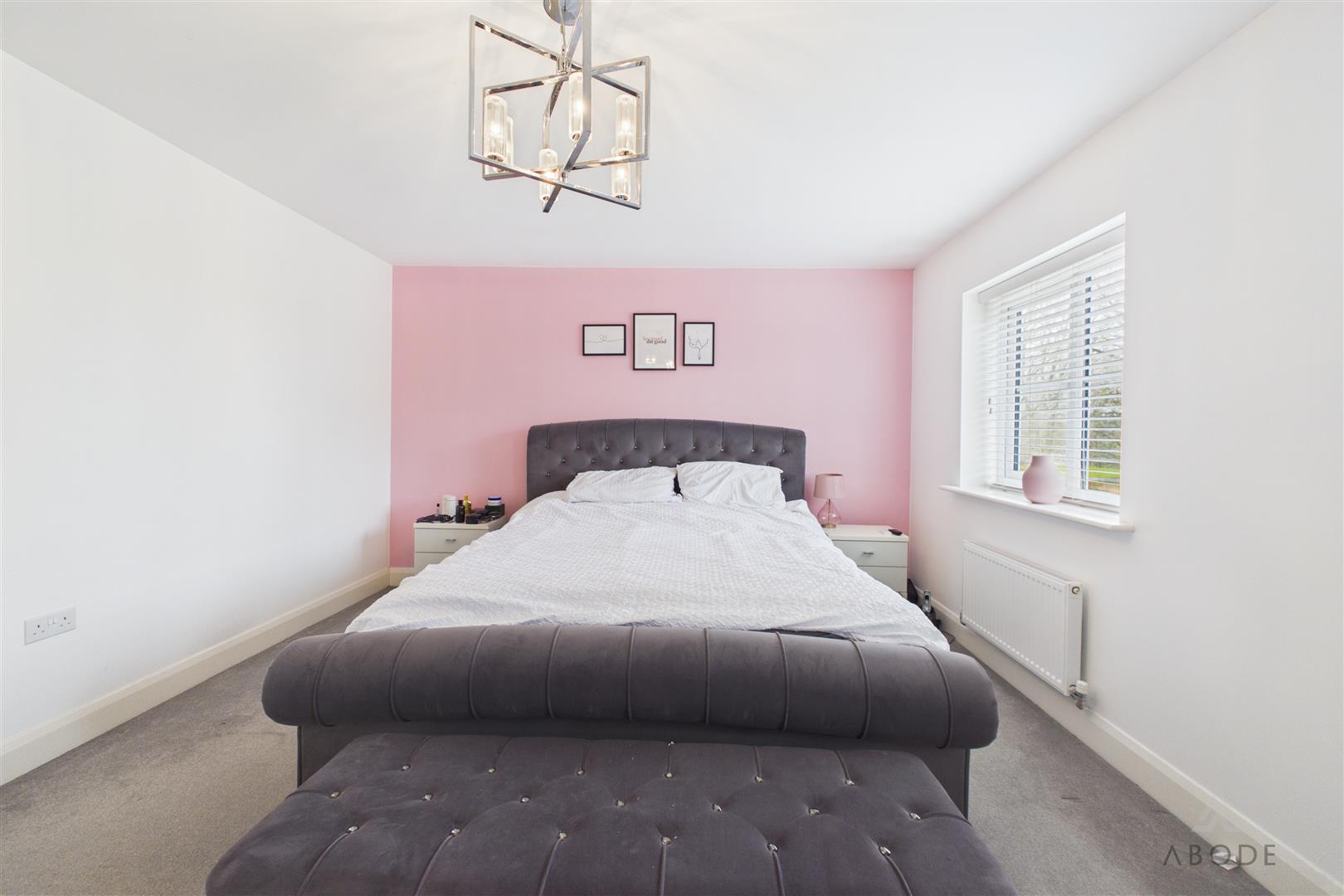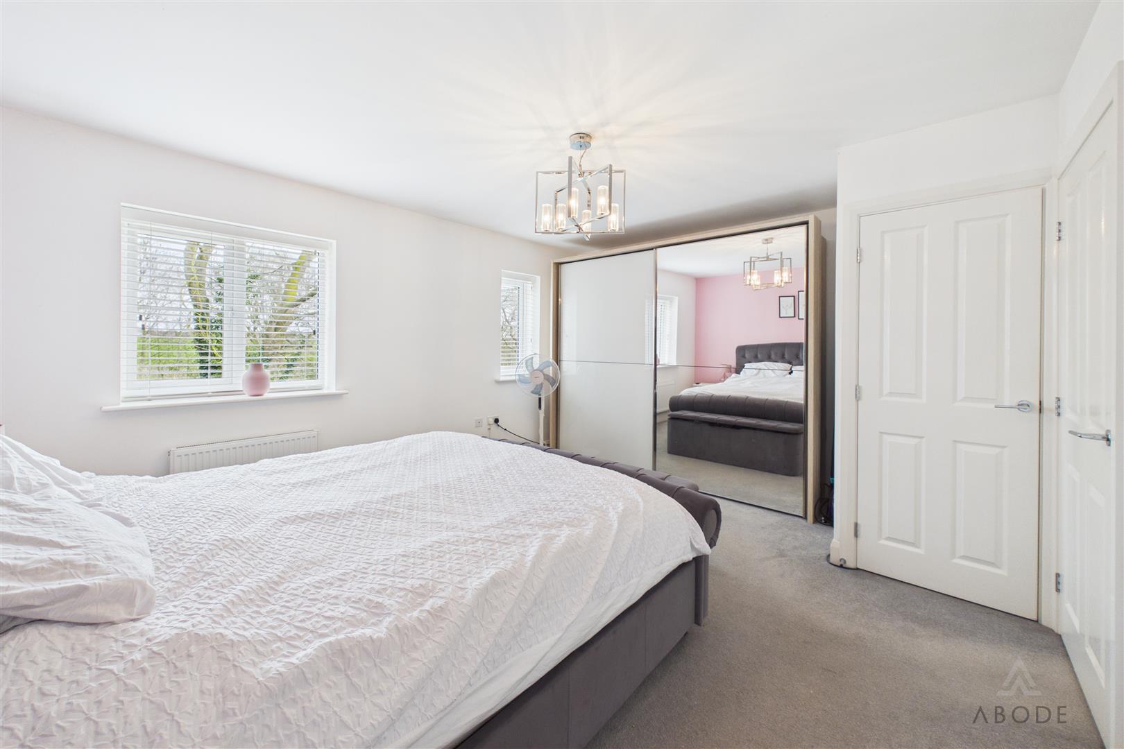 The master bedroom is particularly generous in size, offering space for freestanding furniture.