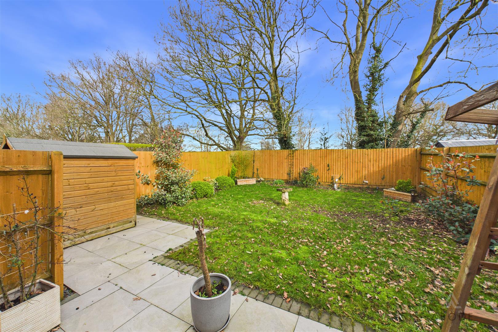 The rear garden is fully enclosed by timber fencing and is mainly laid to lawn with a paved patio area directly adjacent to the property, ideal for outdoor seating and entertaining. There is also a timber shed providing useful storage.