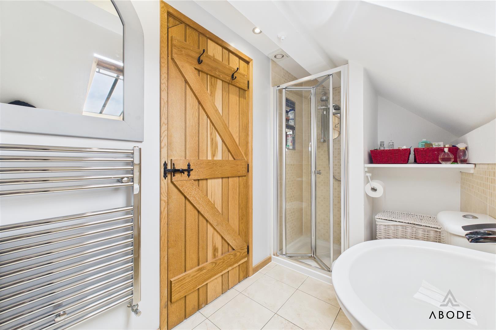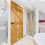 Upstairs, the landing leads to a charming double bedroom with built-in storage, a luxurious dressing room (which could easily revert to a bedroom if desired), and a stylish four-piece bathroom. Additional storage cupboards are located off the landing.